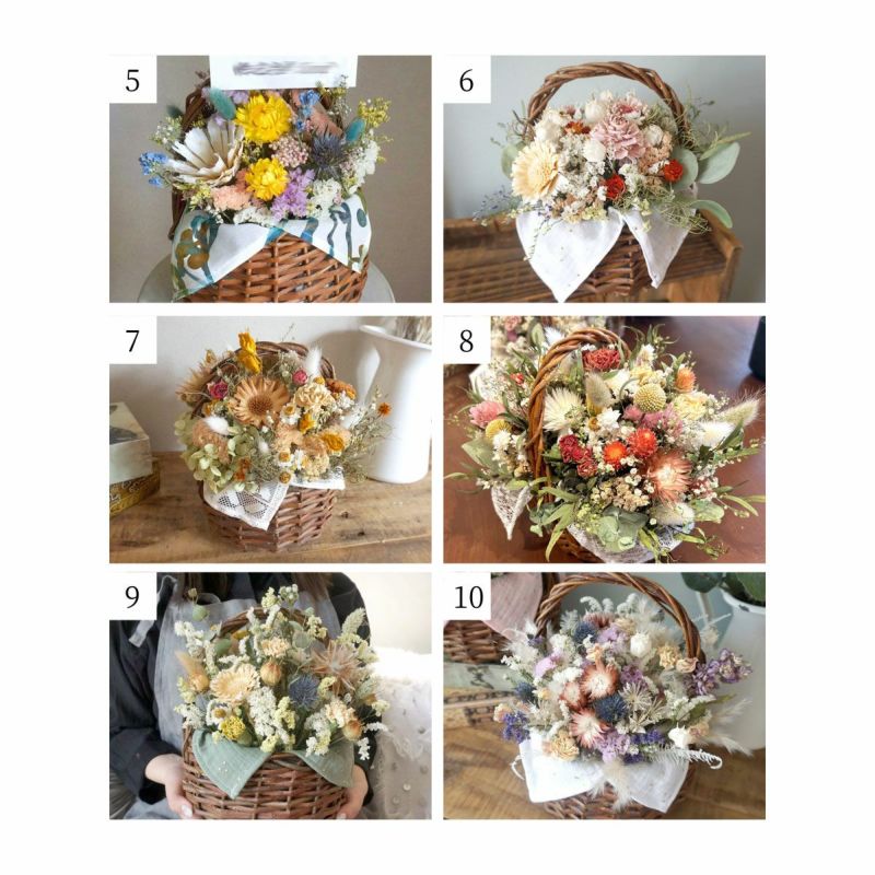 ※花材が落ちる可能性がございますのでバスケットを逆さに向けないようにご注意ください。