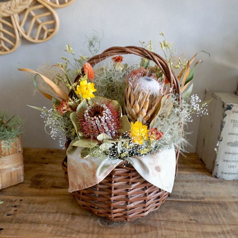 ※キングプロテア等バスケットに入らない大きな花材はご希望をいただいても使用できない場合がございます。