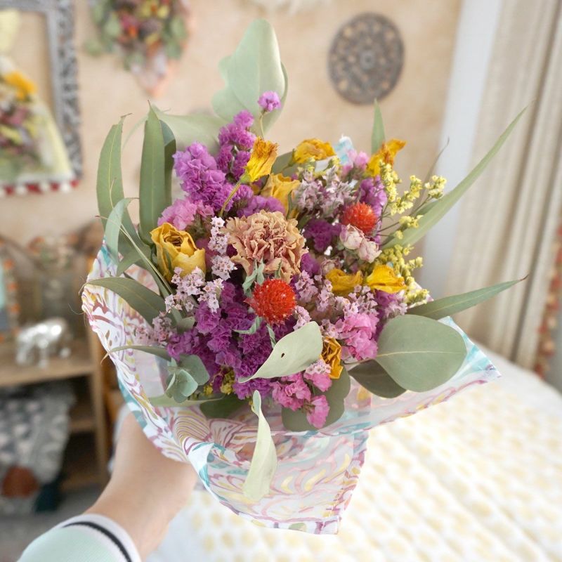 お好みのカスタマイズが可能!プレゼントにぴったり!ピンクのスターチスが可愛いブーケ。モロッカンテイストのインテリアにおすすめ!