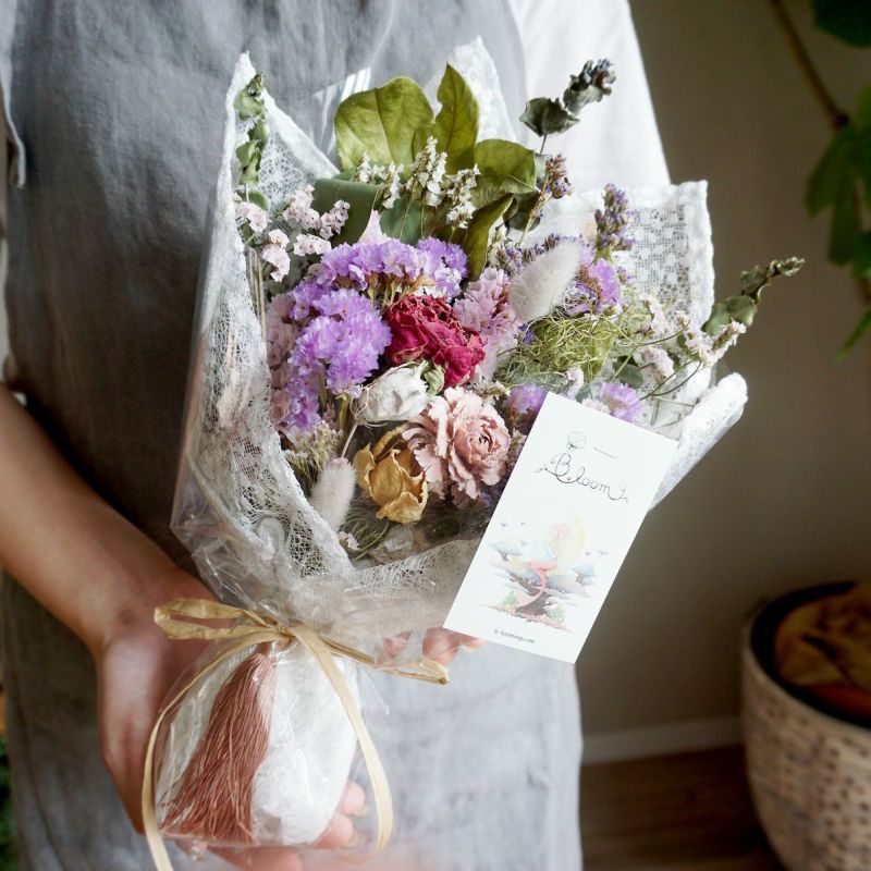 人気の花束を生地、チャームなどをお客様のお好みに合わせてアレンジ可能。