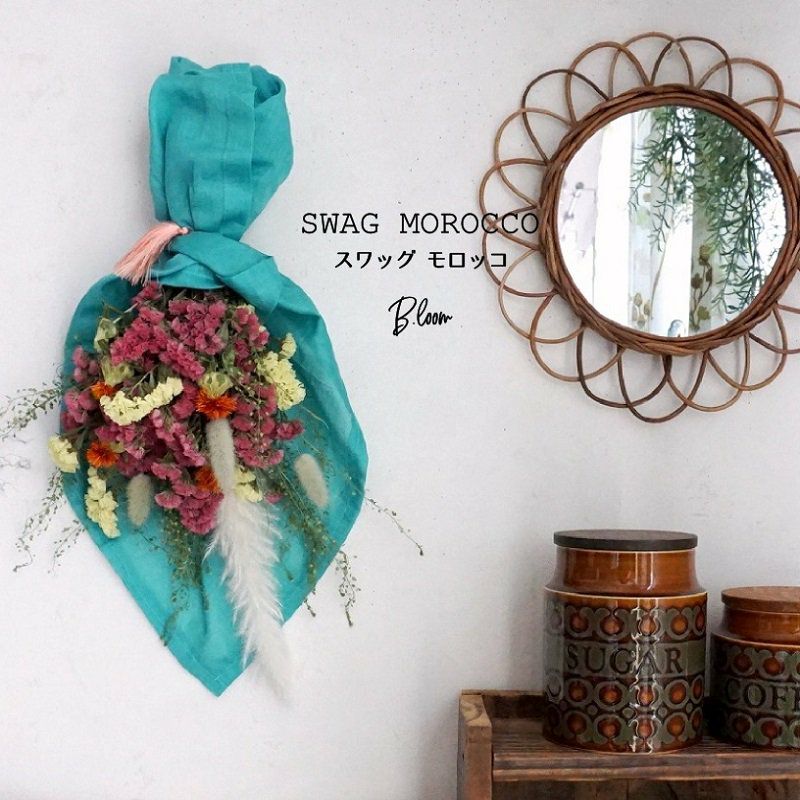モロッカンインテリアにぴったりのドライフラワー花束スワッグ。ギフトやちょっとしたプレゼントにもぴったり!誕生日・記念日・結婚祝いにもおすすめ。