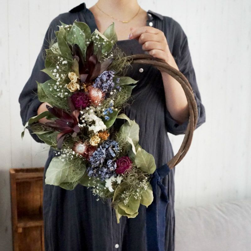 ドライフラワーの中でも鮮やかな色のドライフラワーでまとめたところがポイントです。