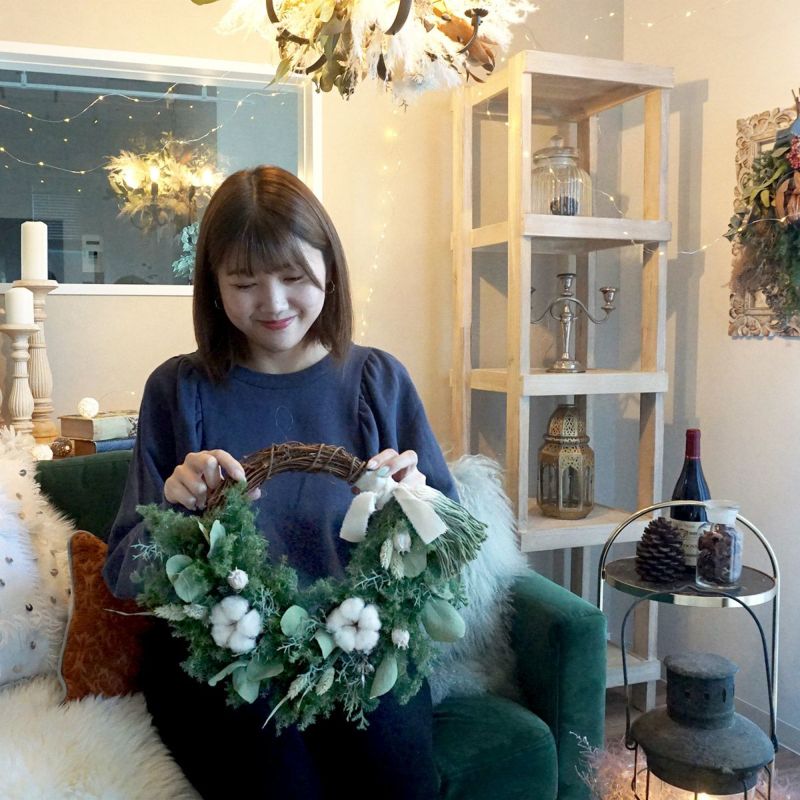 ユーカリポポラスやふわっとしたコットンなどかかわいらしく、まるで森の中にいる気分です♪