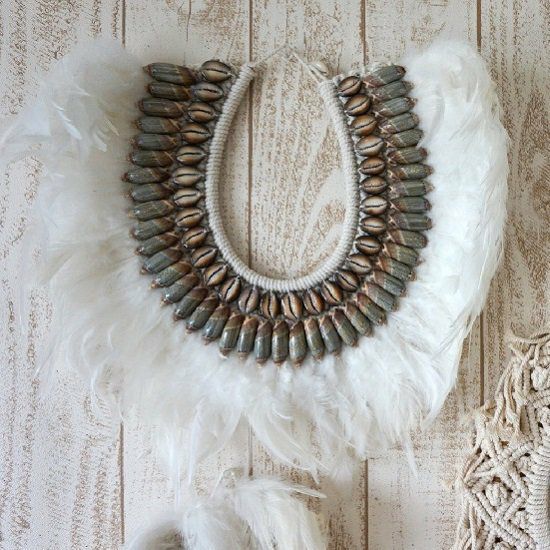 また、本物のフェザーやシェル等を用いて一つ一つ手作りしておりますため、製作過程で生じる糊や繊維などが付着する場合がございますが、使用上問題はございませんので予めご理解下さいませ。