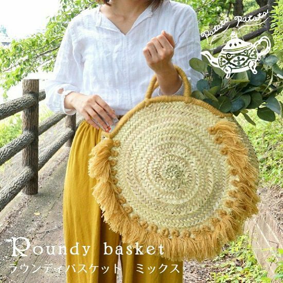 他の画像を見る 【patati patata】 40cm円形・モロッコから直輸入したちょびヒゲみたいなミニタッセルが可愛い手作りの干し草かごバッグ <ラウンディバスケット> 販売価格 ¥ 1,980 税込 モロッコから直輸入したボンボンが可愛い手作りの干し草かごバッグ カートに入れる お気に入りに登録する