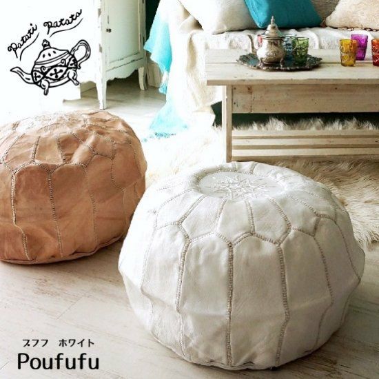 4. モロッコから直輸入!山羊の革のプフ<プフフ ホワイト>