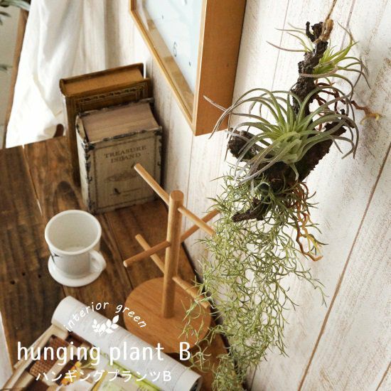 エアプランツの付いた吊り下げタイプのインテリアグリーンです。