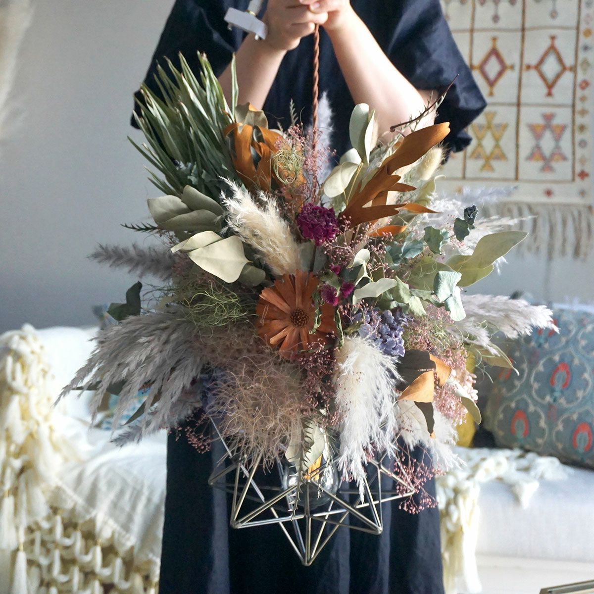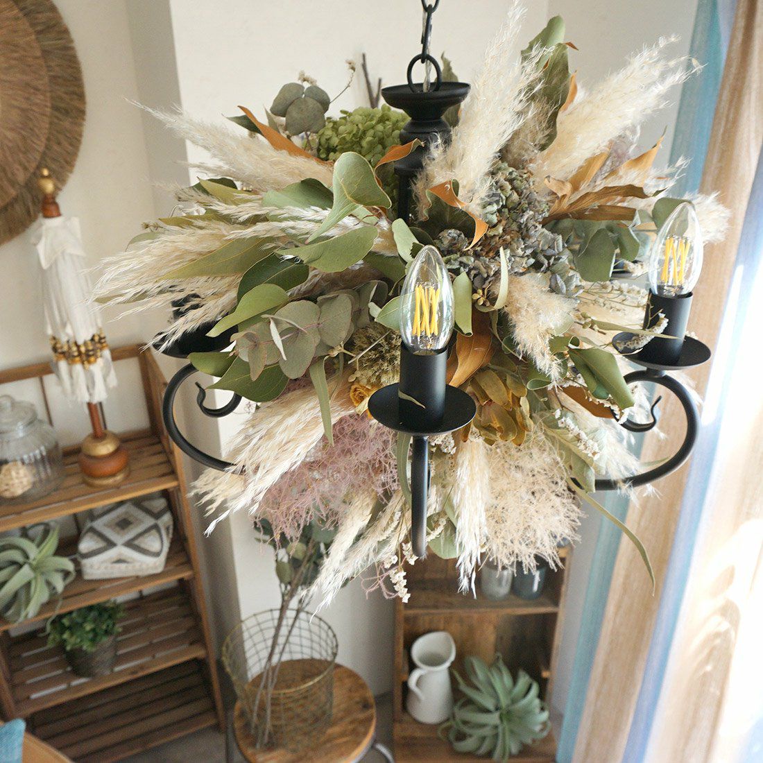 ドライフラワーを使ったランタンやペンダント照明、シャンデリアは以下からご覧ください。