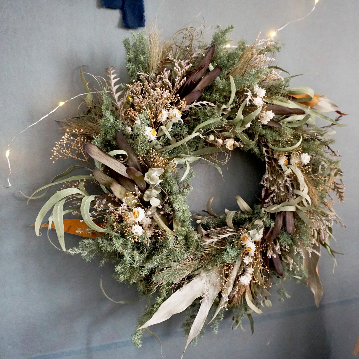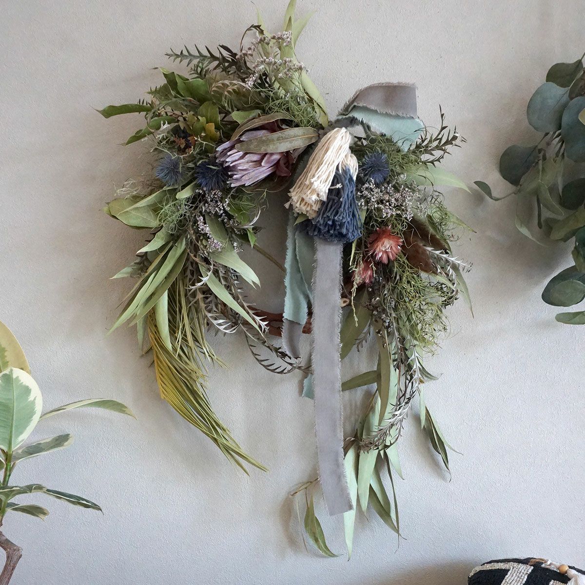他の画像を見る 【Botanique-ボタニーク-】ユーカリやルリタマアザミを使ったボタニカルリース<ボタニカルタイム> 販売価格 ¥ 12,100 税込 ボタニカルインテリアにおすすめなユーカリやデルフィニウム、スターチスを使ったドライフラワーリースです。 詳細を見る お気に入りに登録する