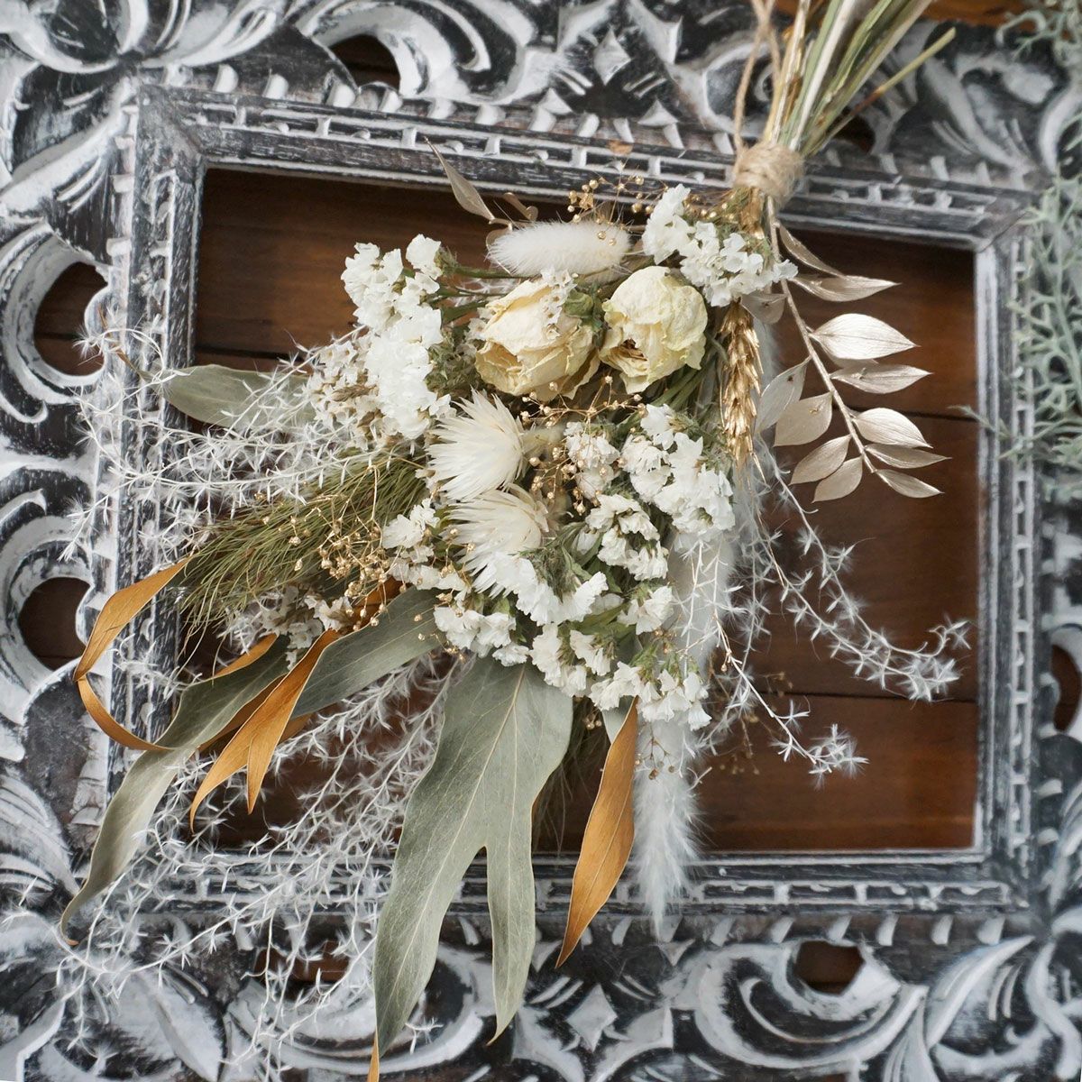 他の画像を見る 【冬のインテリアにおすすめ】真っ白なお花を使用したおしゃれなドライフラワースワッグ・花束<オリオン> 販売価格 ¥ 6,600 税込 【冬のインテリアにおすすめ!】スターチスやエバーラスティングなど真っ白なお花を使ったおしゃれなドライフラワースワッグ・花束です。クリスマスにもおすすめ 詳細を見る お気に入りに登録する