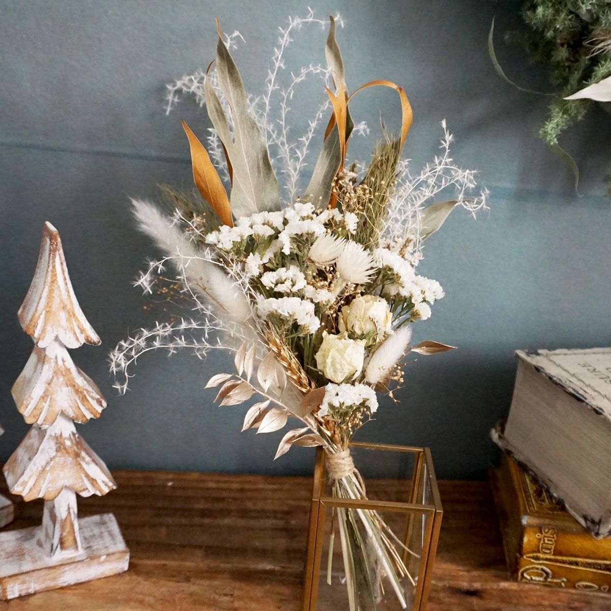 他の画像を見る 【クリスマスや冬のインテリアにおすすめ】花瓶に飾れる小さめサイズのドライフラワーミニスワッグ・花束<プチノエル ホワイト> お急ぎ便 販売価格 ¥ 4,400 税込 クリスマスにもぴったりのミニスワッグ。ホワイトとゴールドで上品にまとめました。 ミニサイズの小さな花束は花瓶に飾ったり、壁に飾ったりすることができます。 ギフトやちょっとしたプレゼントにもぴったりです。クリスマス以外にも誕生日・記念日のプレゼントにもおすすめです。 詳細を見る お気に入りに登録する