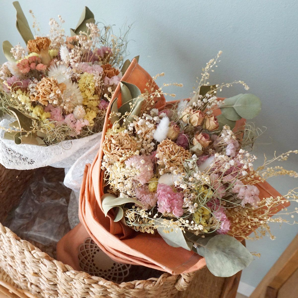 他の画像を見る 【結婚・出産祝いギフトにおすすめ】お好きな生地と価格が選べるドライフラワー花束<パステルマミー> 販売価格 ¥ 6,600 税込 【結婚・出産祝いのギフトにおすすめ!】お祝いにぴったりの華やかな花束です。ドライフラワーはお部屋に長く飾っていただけるので長期間楽しんでいただけます。生地やブレード、チャームも選べて価格も3種類からお選びいただけます。 詳細を見る お気に入りに登録する