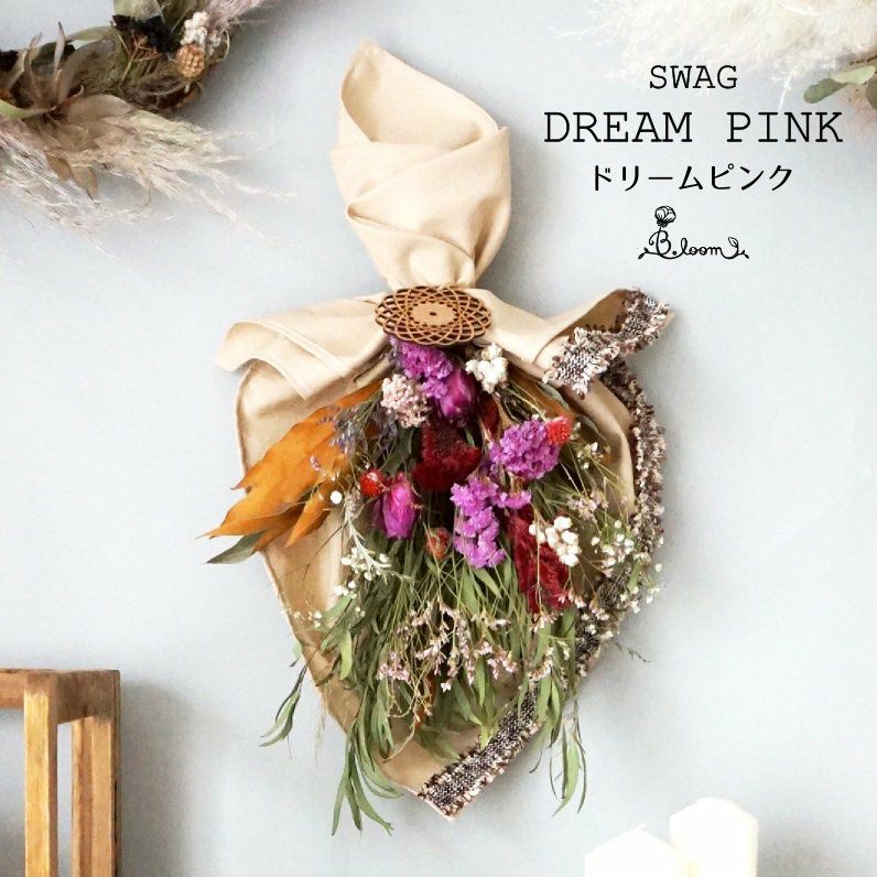 お祝いにピッタリの華やかなピンクの花束スワッグです。