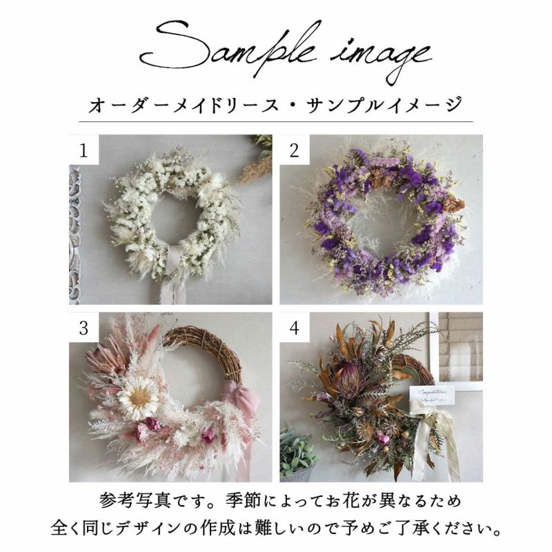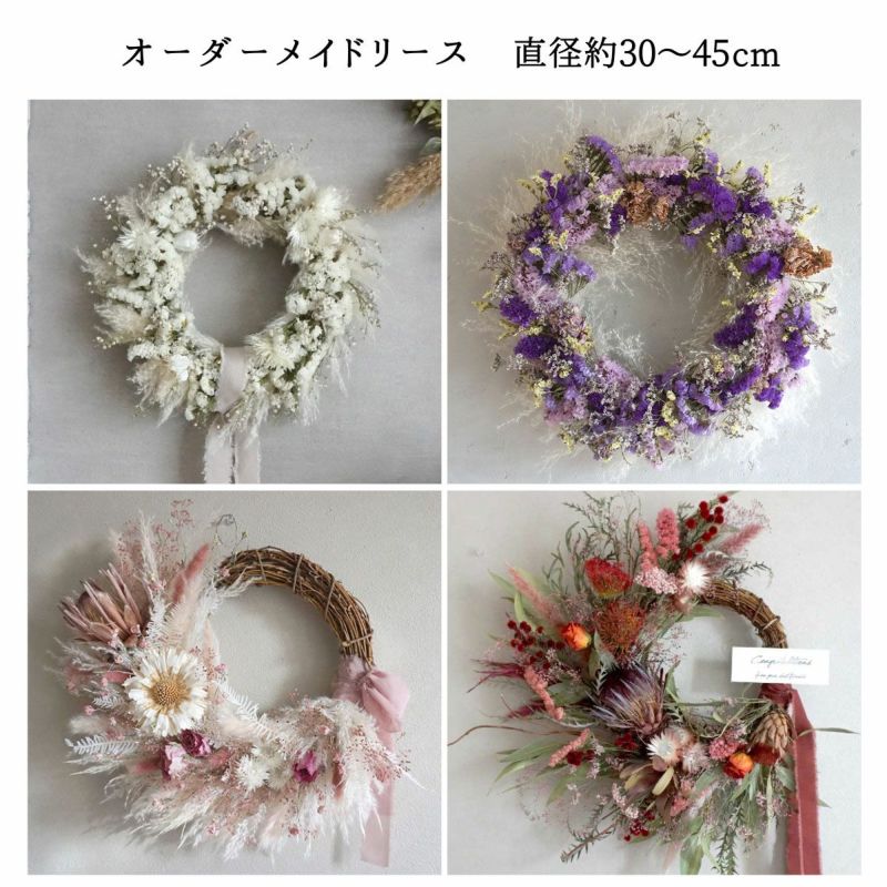 ご希望の花材、色味などのリクエストに応じて1点1点オリジナルのリースをお作りできます。