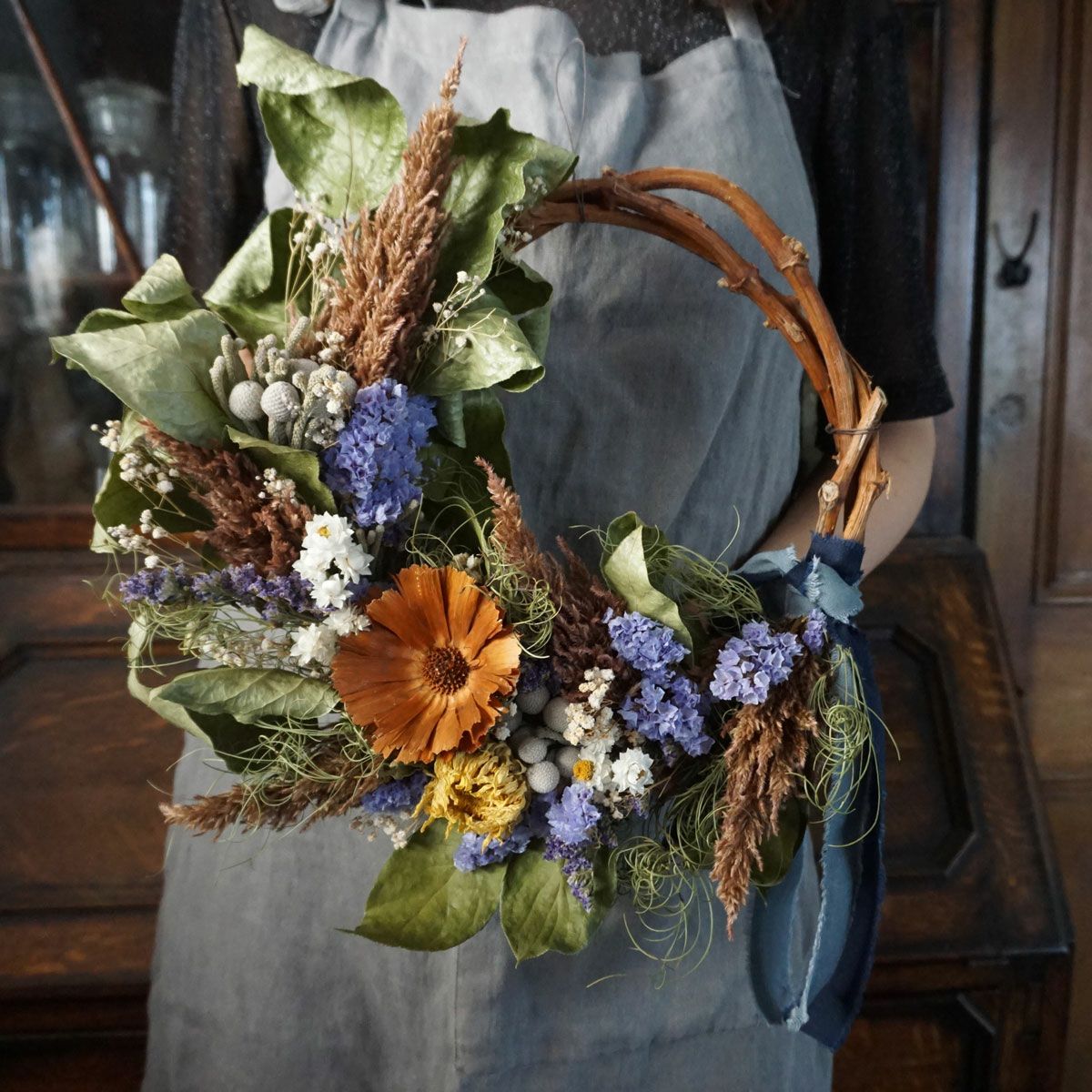他の画像を見る 【patati patata-パタティパタタ-】コットンxリネン100%のスワッグバック付き!秋色アジサイのブルーに、ローズと紅花のオレンジをアクセントにした豪華な花束スワッグ<ESTA-エスタ-> 販売価格 ¥ 16,500 税込 在庫切れ モロッカンインテリアにぴったりのブルームオリジナル、ドライフラワー花束スワッグ。ギフトやちょっとしたプレゼントにもぴったり!誕生日・記念日・結婚祝いにもおすすめ。 詳細を見る お気に入りに登録する