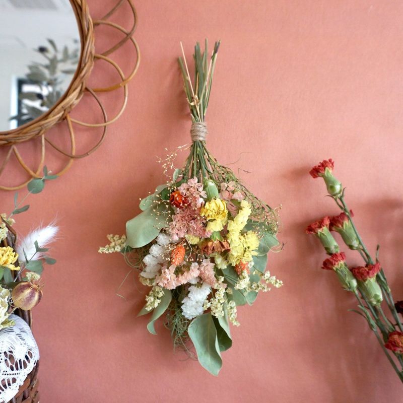 ミニサイズの小さな花束は花瓶に飾ったり、壁に飾ったりすることができます。ギフトやちょっとしたプレゼントにもぴったりです。誕生日・記念日のプレゼントにもおすすめです。