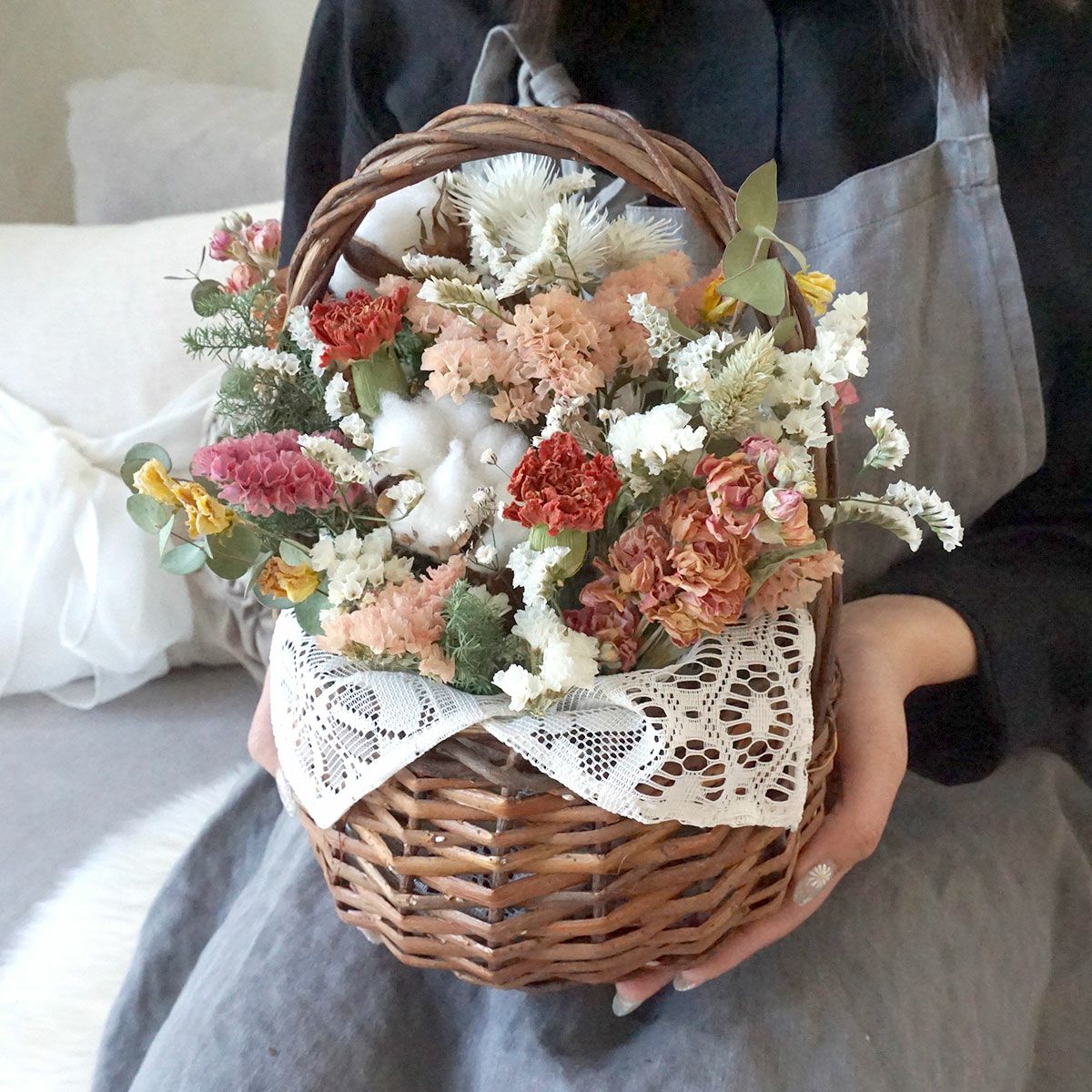 他の画像を見る 開店祝いや誕生日プレゼント、結婚祝いにおすすめ!ナチュラルな雰囲気のドライフラワーバスケット<ボスコ> 販売価格 ¥ 9,900 税込 在庫切れ 開店祝いや誕生日プレゼント、結婚祝いにおすすめなナチュラルでおしゃれなドライフラワーバスケット。バスケット内の生地もお好みのものをお選びいただけます。ドライフラワーバスケットは置くだけでインテリアになるので、簡単にお花をお楽しみいただけます。無料でクリアフィルムラッピングもしていますので、ぜひプレゼントにご検討くださいませ。 詳細を見る お気に入りに登録する