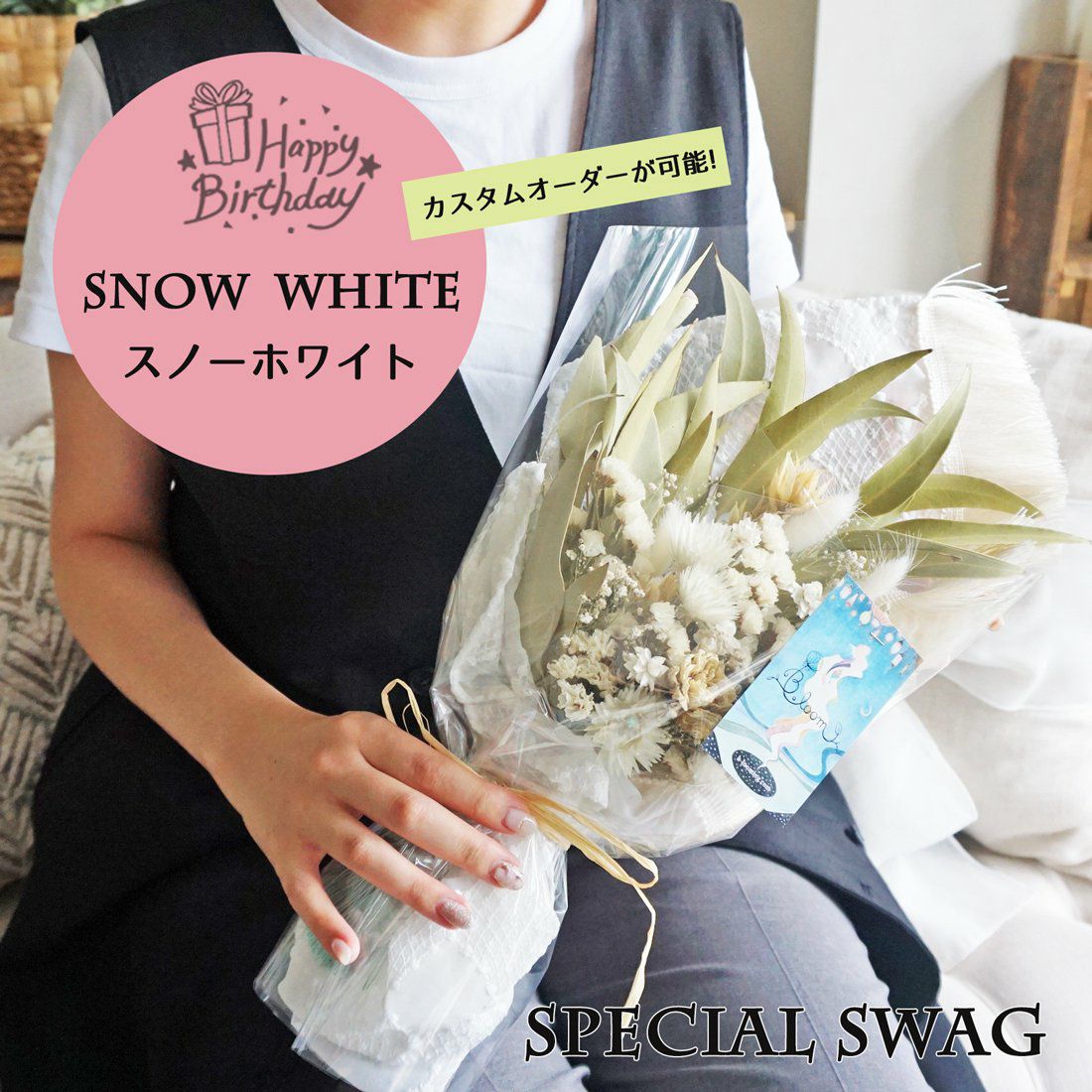 他の画像を見る オーダーメイド花束<ドライフラワースワッグ ご予算8800円> オーダーメイド 販売価格 ¥ 8,800 税込 プレゼントにおすすめの世界に一つだけのオーダーメイド花束。お好きなイメージや色味でお作りするフルオーダーの花束です。発送前にお写真を送付して確認いただけます。無料修正も2回まで承っております。誕生日・開店祝い・引っ越し祝い・結婚祝い・記念日のお祝いにもおすすめ! 詳細を見る お気に入りに登録する