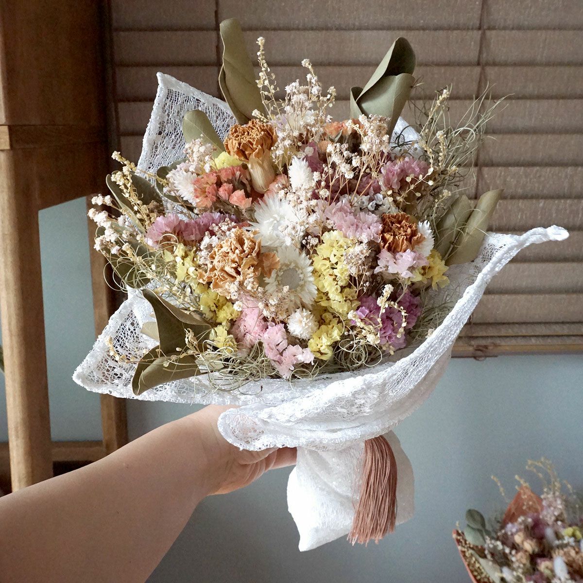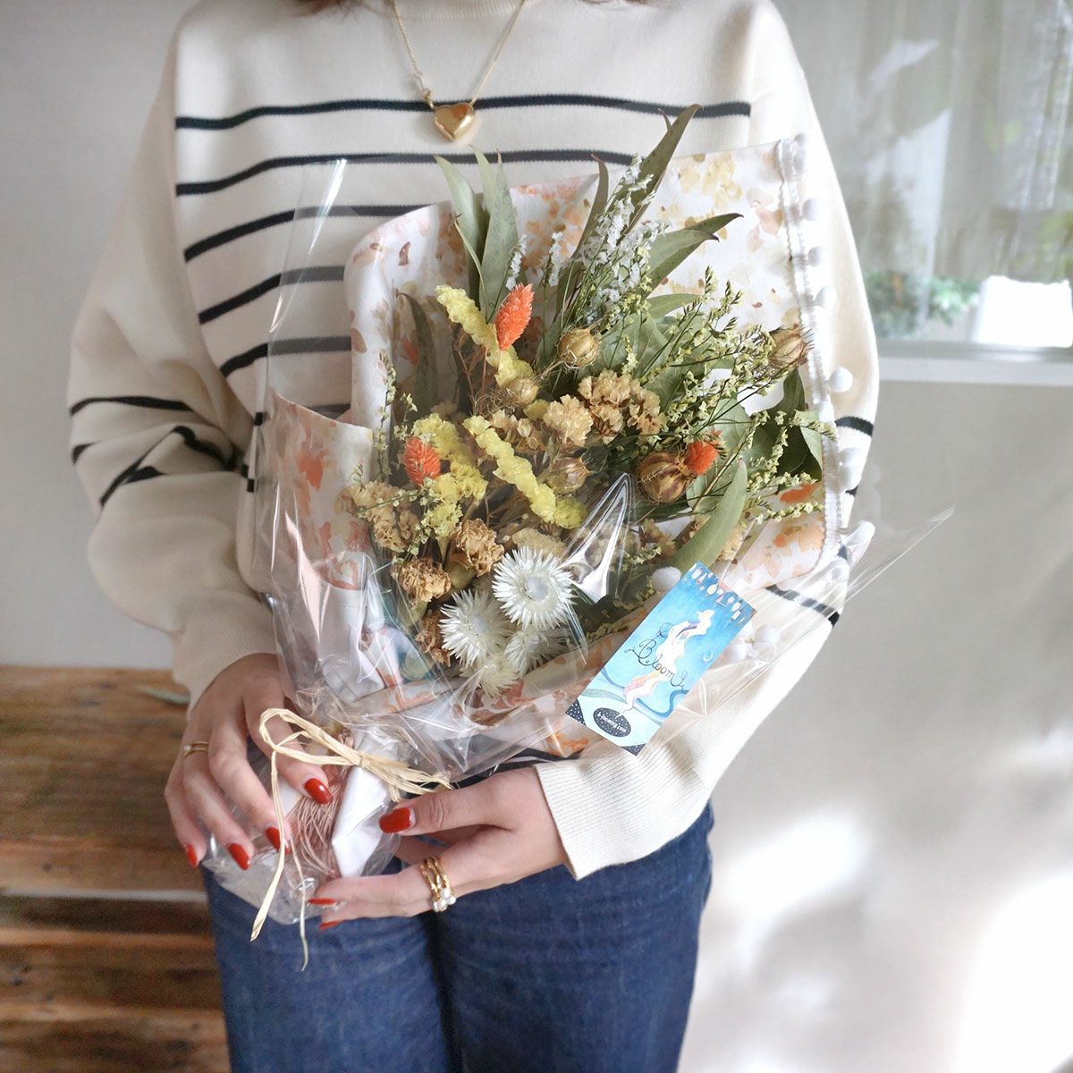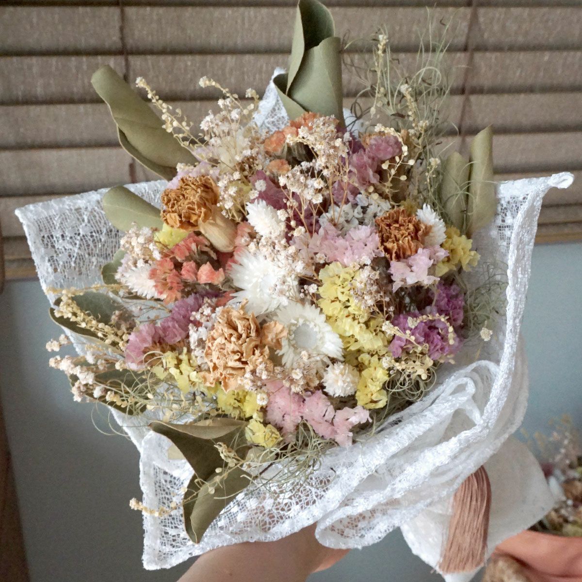 他の画像を見る 【誕生日プレゼントにおすすめ】お好みのカスタマイズが可能!プレゼントにぴったり!ホワイトスターチスをメインにカラフルなドライフラワーがかわいい花束<ホワイトウィッシュ> 販売価格 ¥ 6,600 税込 お好みのカスタマイズが可能!プレゼントにぴったりなカラフルな色合いがかわいい花束。彼女への贈り物にもおすすめ。 詳細を見る お気に入りに登録する