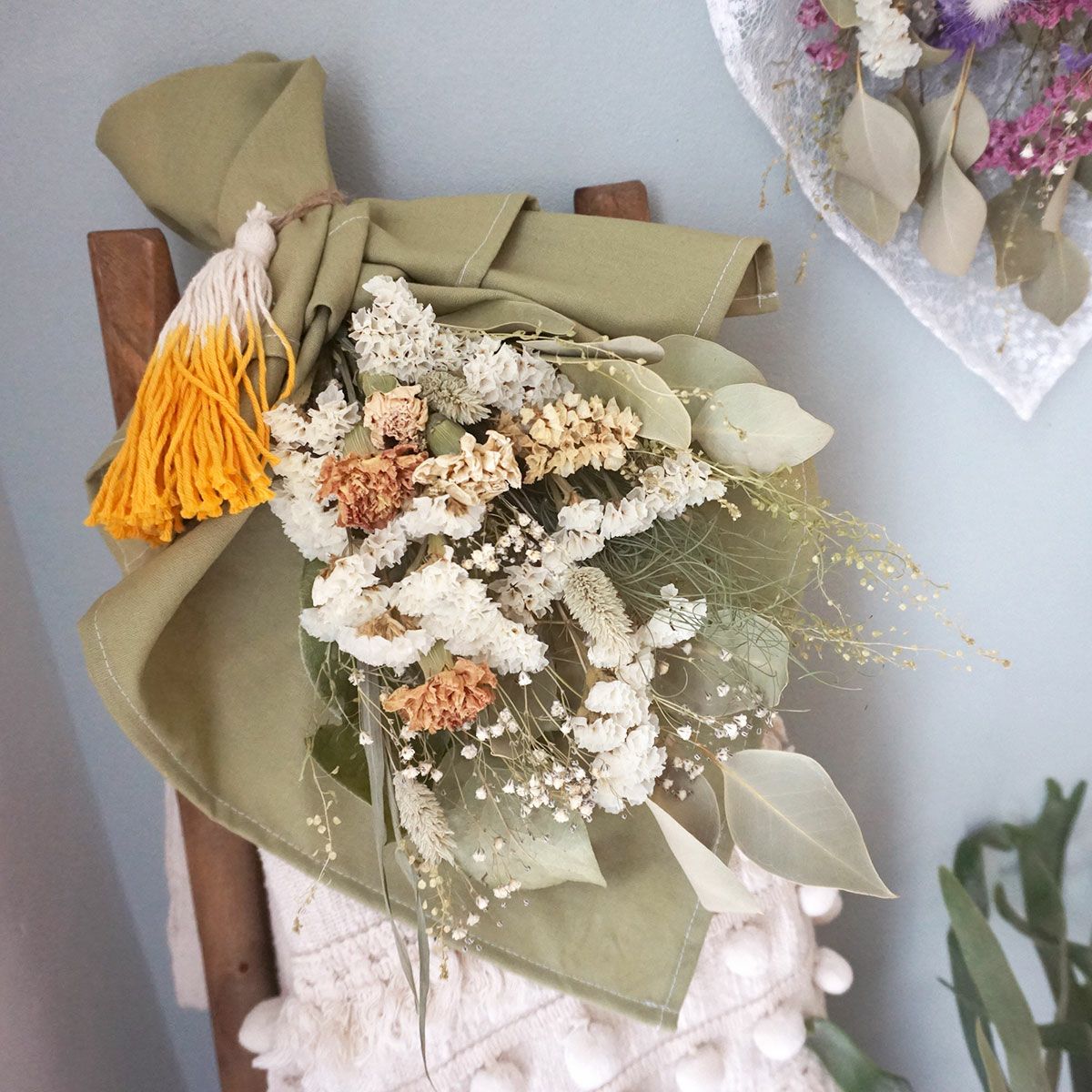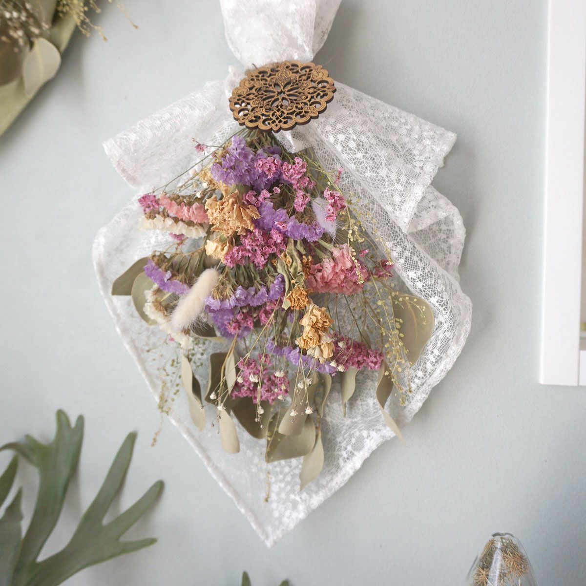 他の画像を見る スターチスやユーカリを使ったおしゃれなドライフラワースワッグ<ハルイロ> 販売価格 ¥ 6,600 税込 スターチスやユーカリを使ったおしゃれなドライフラワースワッグ。ナチュラルテイストのインテリアにもおすすめです! 詳細を見る お気に入りに登録する