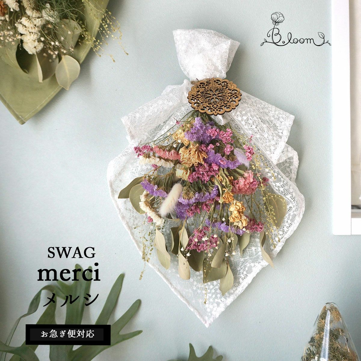 他の画像を見る スターチスとカーネーションのスワッグ<merci-メルシ-> 販売価格 ¥ 6,600 税込 スターチスとカーネーションをふんだんに使用した商品!プレゼントにぴったりのスワッグ 詳細を見る お気に入りに登録する