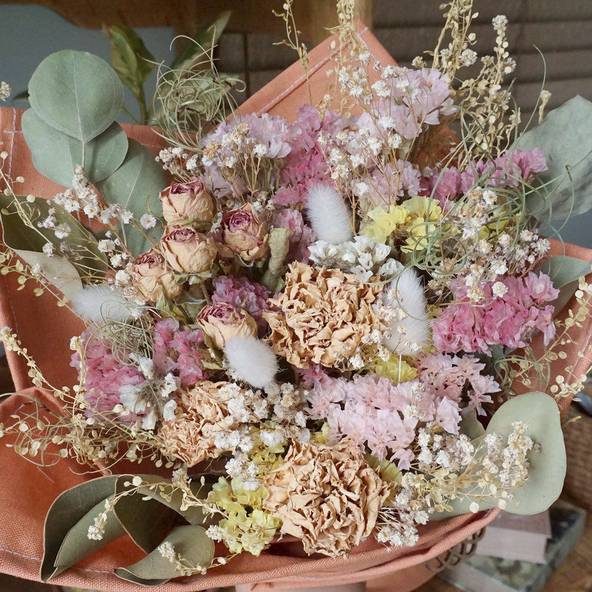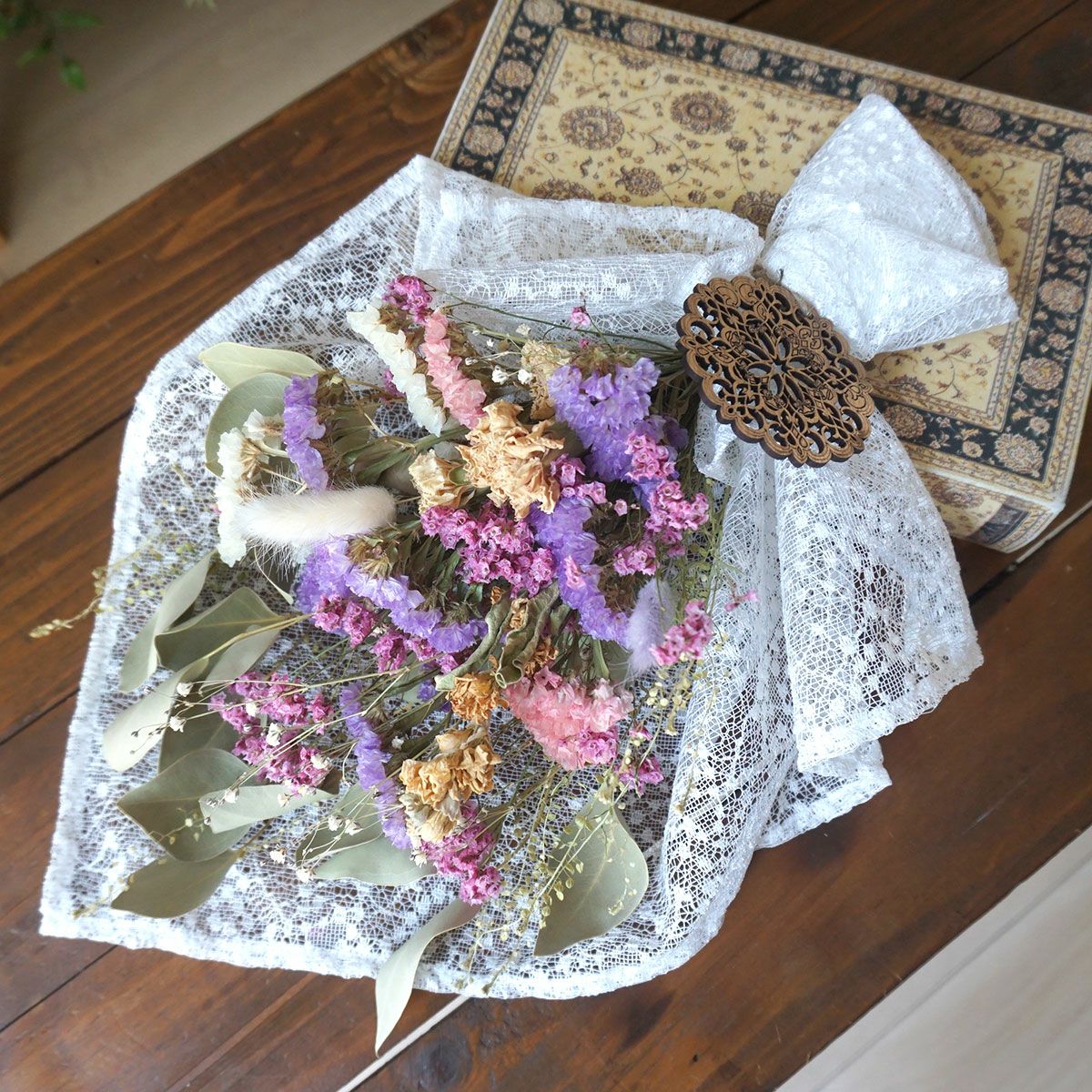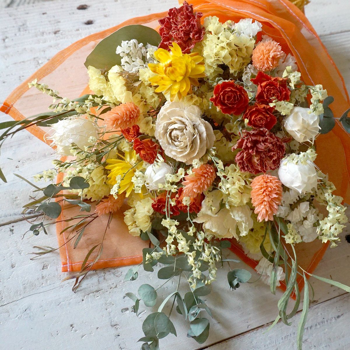 他の画像を見る オーダーメイド<ドライフラワーブーケ ご予算9900円> オーダーメイド 販売価格 ¥ 9,900 税込 プレゼントにおすすめの世界に一つだけのオーダーメイドブーケ。お好きなイメージや色味でお作りするフルオーダーのブーケです。発送前にお写真を送付して確認いただけます。無料修正も2回まで承っております。誕生日・開店祝い・引っ越し祝い・結婚祝い・記念日のお祝いにもおすすめ! 詳細を見る お気に入りに登録する