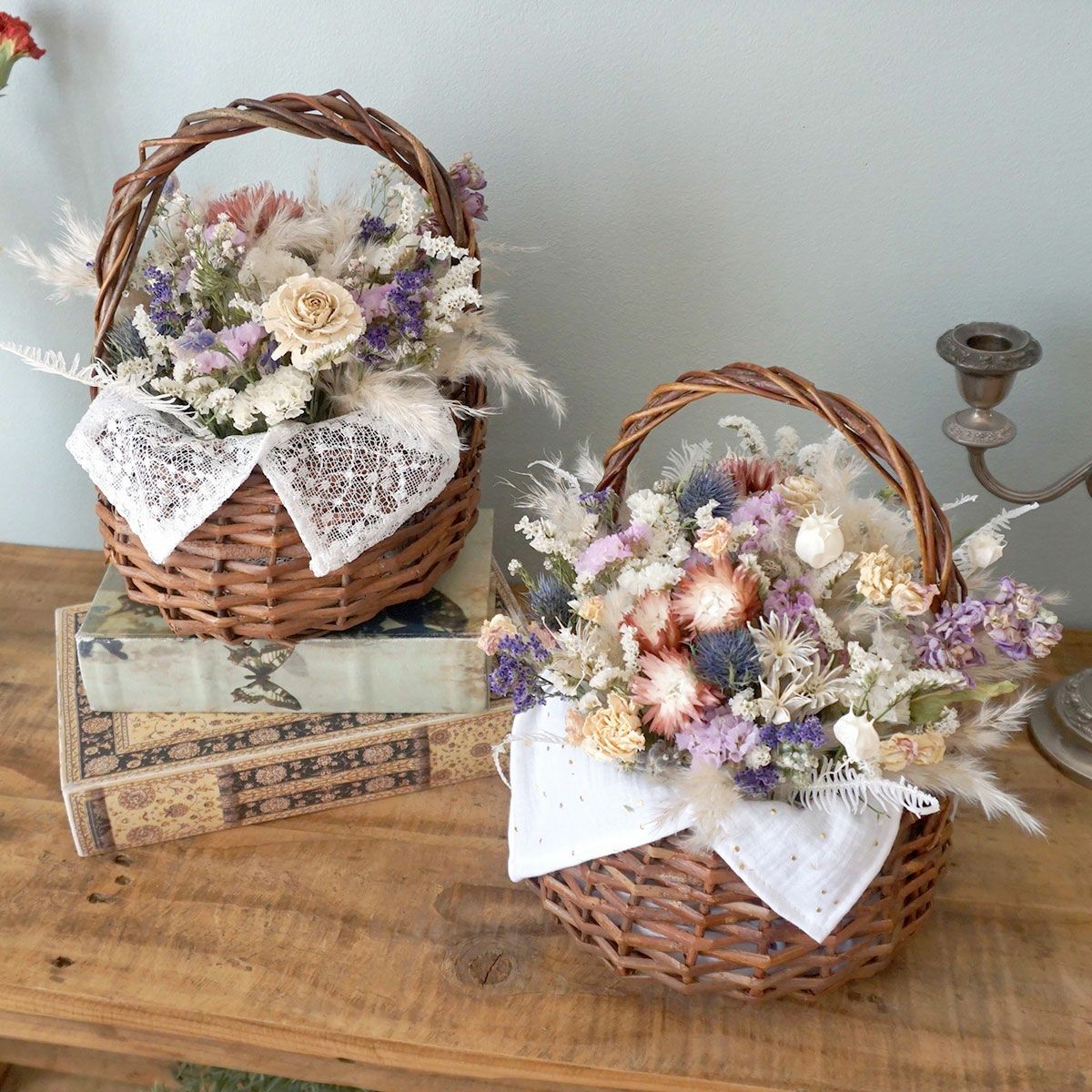 他の画像を見る 開店祝いや誕生日プレゼント、結婚祝いにおすすめ!ナチュラルな雰囲気のドライフラワーバスケット<ボスコ> 販売価格 ¥ 9,900 税込 開店祝いや誕生日プレゼント、結婚祝いにおすすめなナチュラルでおしゃれなドライフラワーバスケット。バスケット内の生地もお好みのものをお選びいただけます。ドライフラワーバスケットは置くだけでインテリアになるので、簡単にお花をお楽しみいただけます。無料でクリアフィルムラッピングもしていますので、ぜひプレゼントにご検討くださいませ。 詳細を見る お気に入りに登録する