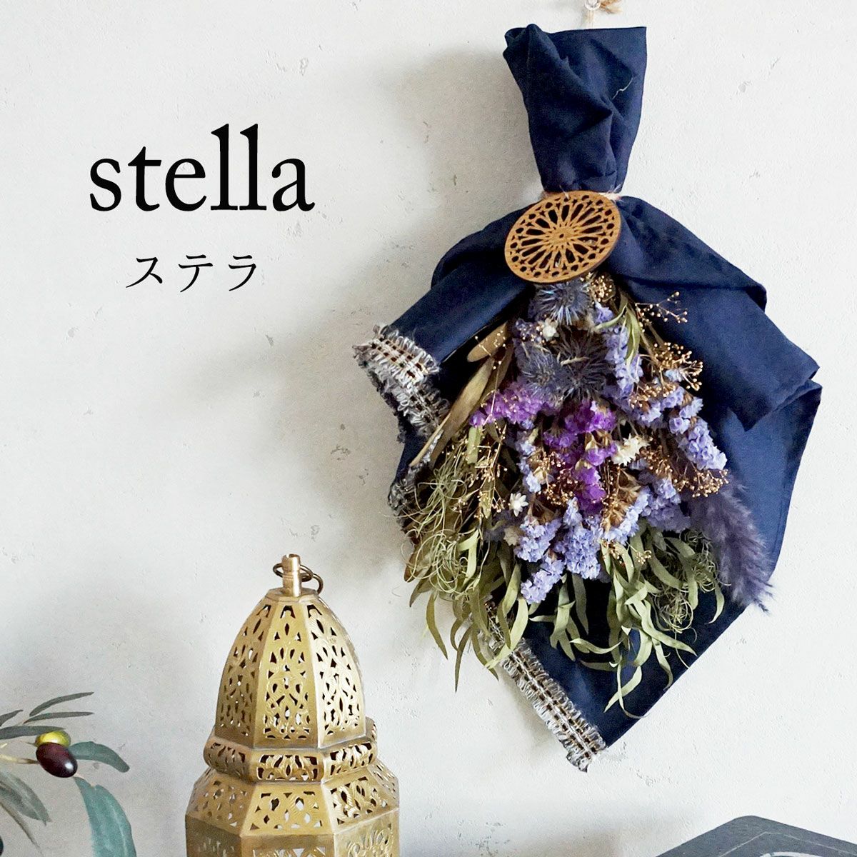他の画像を見る 【お急ぎ便】夜空をイメージしたスターチスのスワッグ<stella-ステラ-> お急ぎ便 販売価格 ¥ 6,600 税込 夜空をイメージしたスターチスとゴールドのカスミソウを使ったスワッグ花束です。誕生日や記念日ギフトにもおすすめ。 詳細を見る お気に入りに登録する