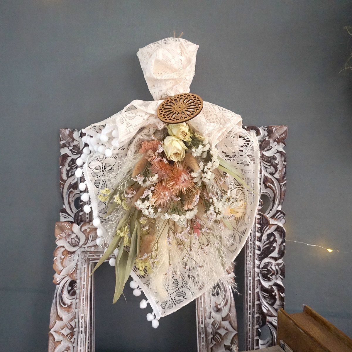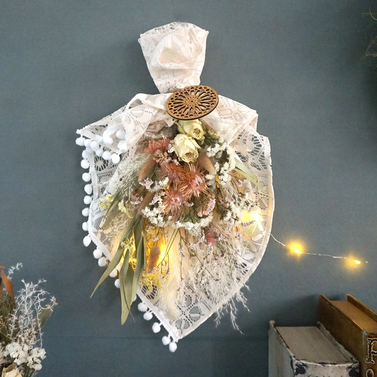 他の画像を見る スターチスとカーネーションのスワッグ<nature-ネイチャー-> 販売価格 ¥ 6,600 税込 スターチスとカーネーションをふんだんに使用した商品!プレゼントにぴったりのスワッグ 詳細を見る お気に入りに登録する