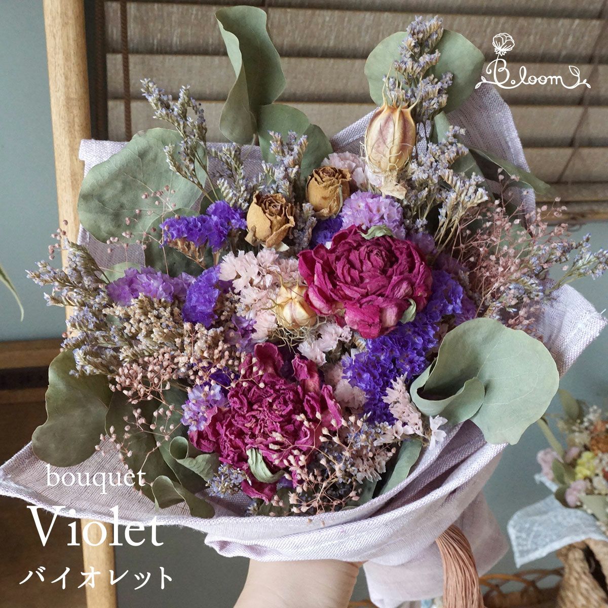 他の画像を見る 【誕生日プレゼントにおすすめ】お好みのカスタマイズが可能!プレゼントにぴったり!大人っぽい紫色でまとめたドライフラワー花束<ノーブルマミー> 販売価格 ¥ 6,600 税込 彼女やお友達、ご家族への誕生日プレゼントにおすすめ!大人な雰囲気の色味の花束です。お写真の雰囲気に似たようなイメージでお作りしたものをお届けします!生地やブレード、チャームも選べて価格も3種類からお選びいただけます。 詳細を見る お気に入りに登録する