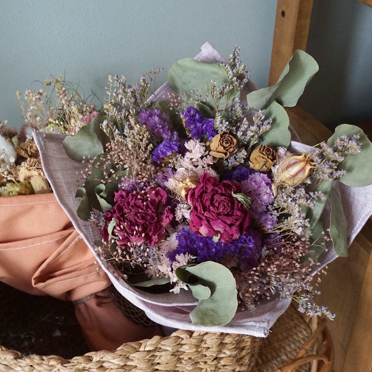 他の画像を見る 開店祝いや誕生日プレゼント、結婚祝いにおすすめ!エレガントな雰囲気のドライフラワーバスケット<エレガンテ> 販売価格 ¥ 9,900 税込 開店祝いや誕生日プレゼント、結婚祝いにおすすめなドライフラワーバスケット。バスケット内の生地もお好みのものをお選びいただけます。ドライフラワーバスケットは置くだけでインテリアになるので、簡単にお花をお楽しみいただけます。無料でクリアフィルムラッピングもしていますので、ぜひプレゼントにご検討くださいませ。 詳細を見る お気に入りに登録する