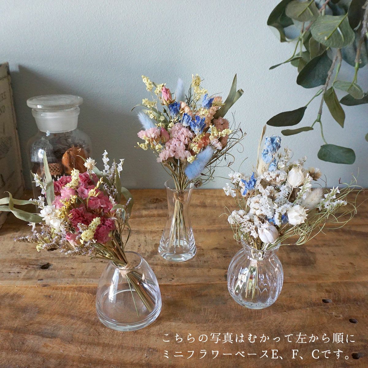 他の画像を見る ミニフラワーベースG×ドライフラワープチブーケセット お急ぎ便 販売価格 ¥ 2,145 税込 ミニサイズの小さなブーケとミニフラワーベースのセット商品です。ギフトやちょっとしたプレゼント、誕生日・結婚祝い・記念日のプレゼントにもおすすめです。 詳細を見る お気に入りに登録する