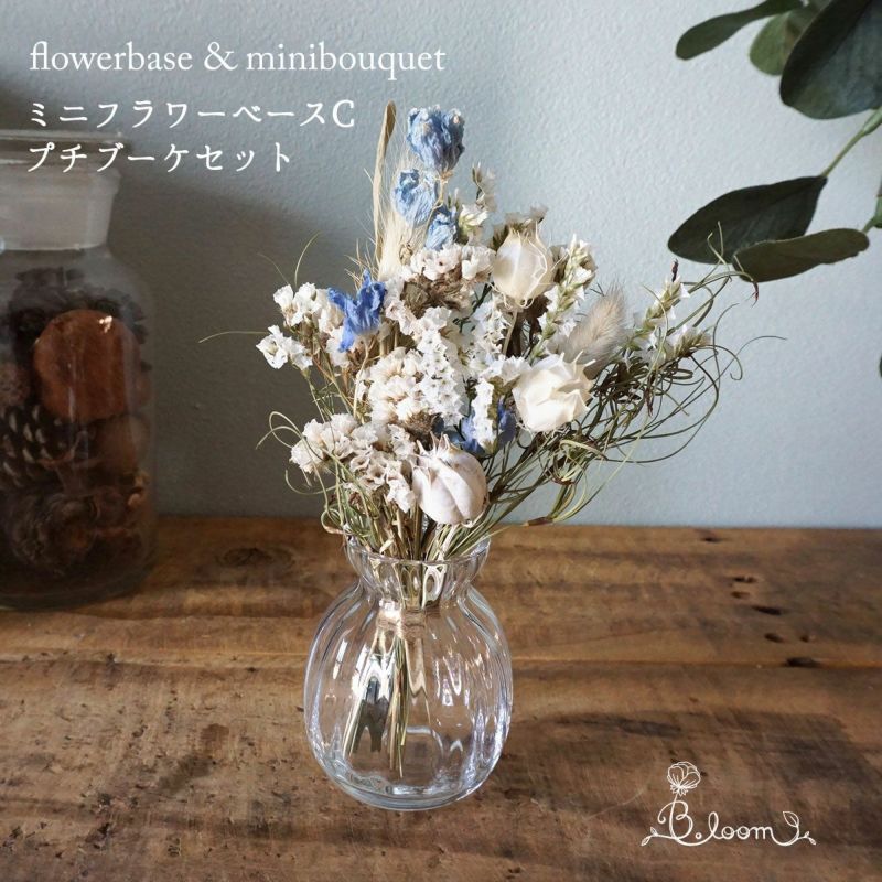 ミニサイズのフラワーベースとプチブーケのセットです。