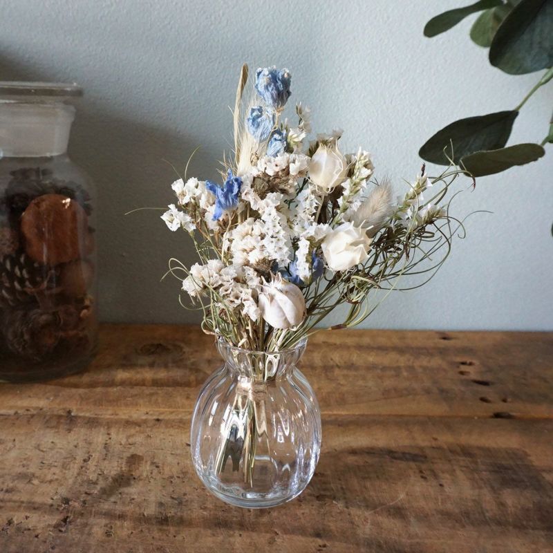 ミニサイズの小さなブーケとミニフラワーベースのセット商品です。ギフトやちょっとしたプレゼント、誕生日・結婚祝い・記念日のプレゼントにもおすすめです。