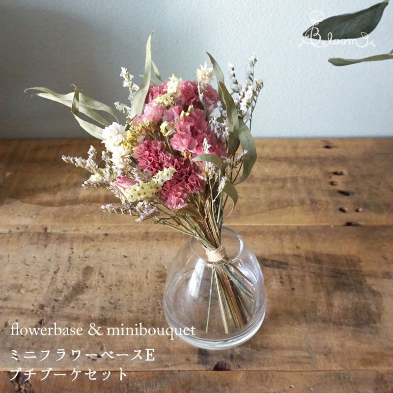 ミニサイズのフラワーベースとプチブーケのセットです。