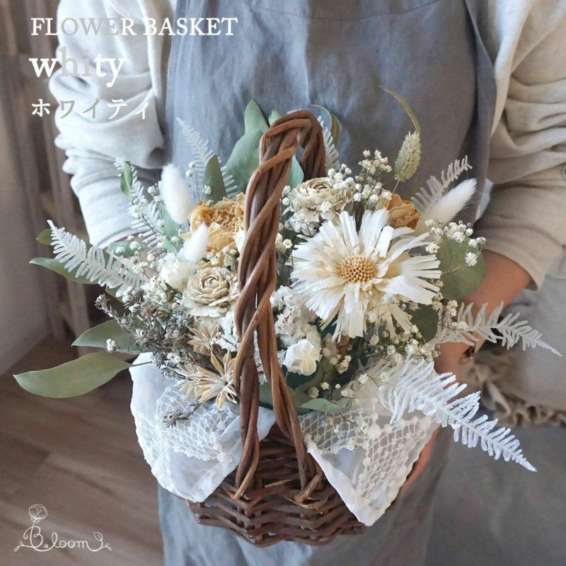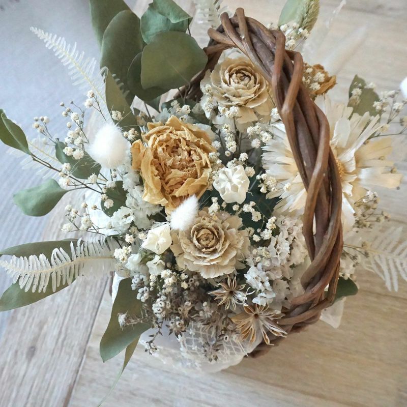 4. 【結婚祝いにおすすめ】ドライフラワーバスケット(Mサイズ)<ホワイティ>
