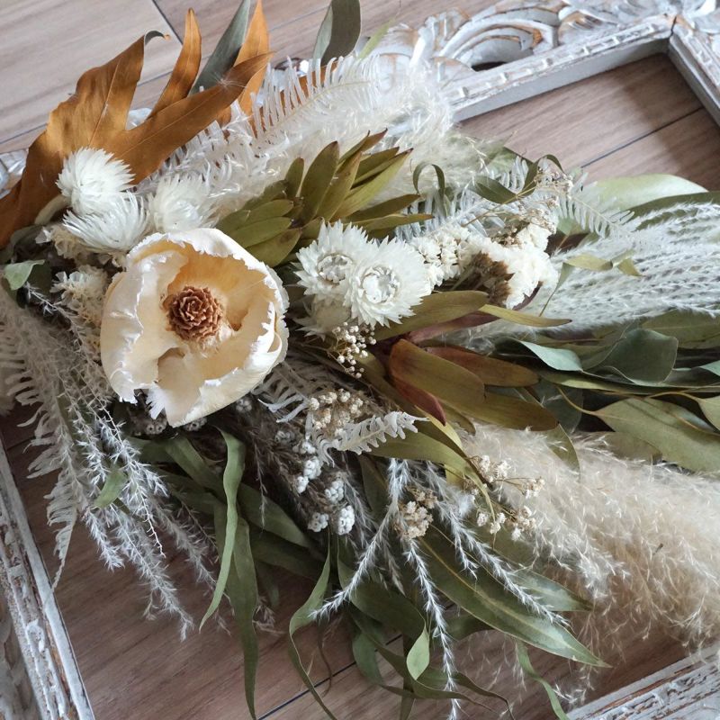 MATERIAL:パームフラワー、パンパスグラス、ユーカリ、エバーラスティング、白シダ、カスミソウなど