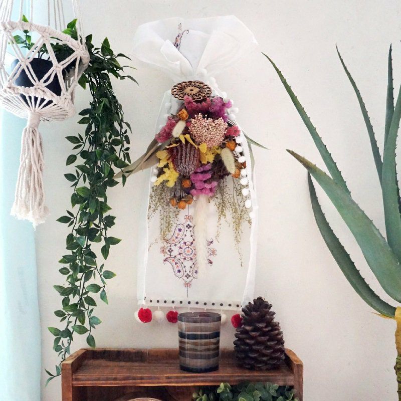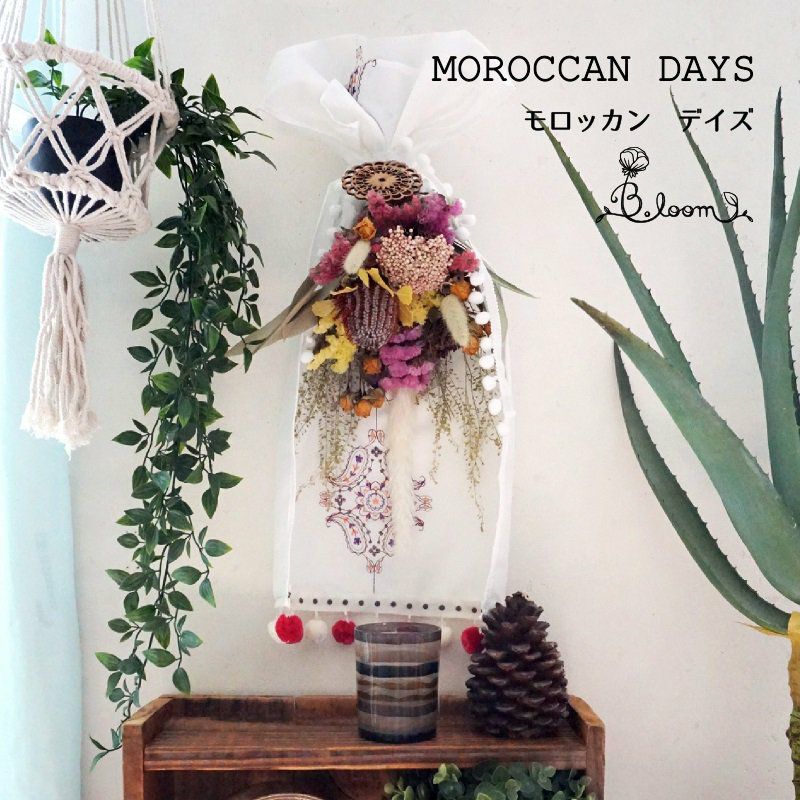 裾のボンボンが可愛いオリジナルモロッカンテイストの花束。ドライフラワーの花束はギフトやちょっとしたプレゼントにもぴったり!誕生日・記念日・結婚祝いにもおすすめ。