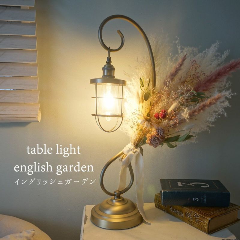 サロンや店舗装飾に!置くだけでかわいいシャビーシックなテーブルランプです。ランプにドライフラワーブーケをあしらっています。開業祝い・結婚祝い・開店祝いなどのプレゼントギフトにもおすすめ。