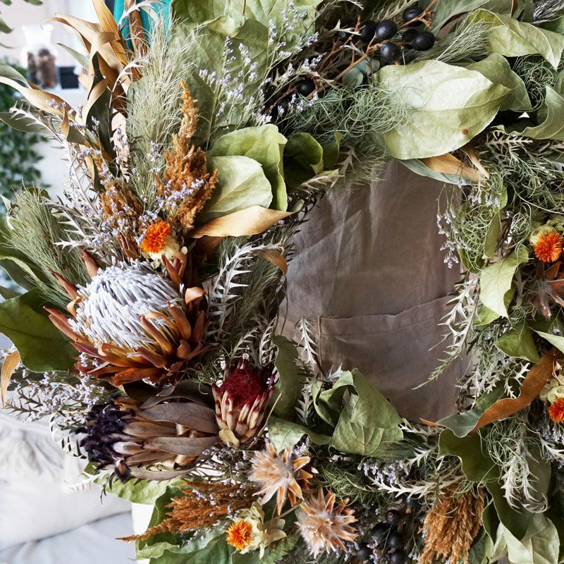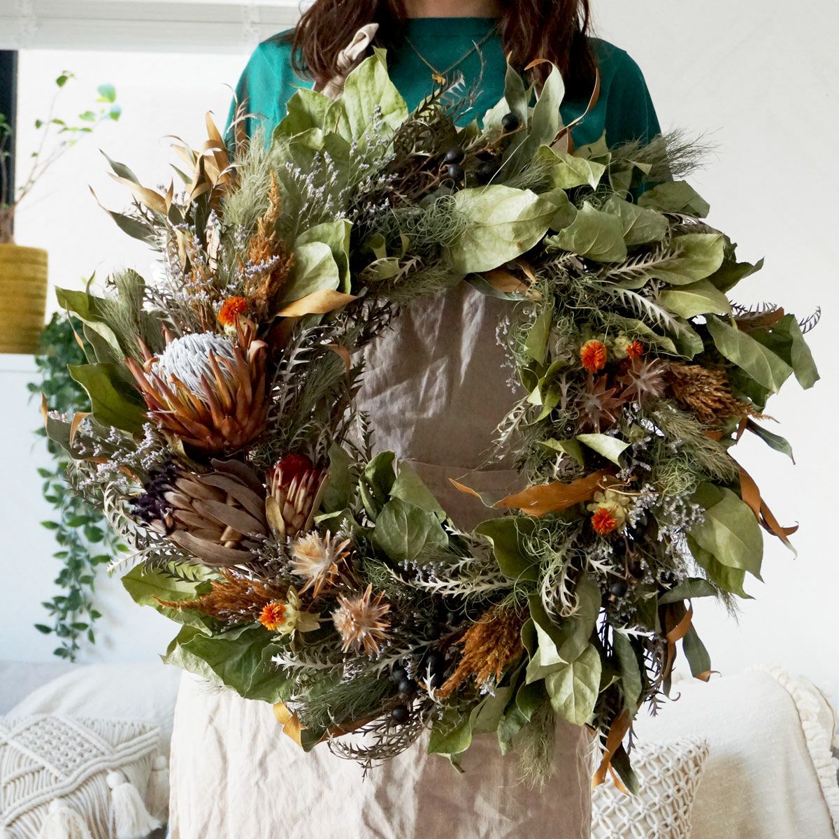 プレゼントにもぴったりの花束。壁に飾れるスワッグと贈呈用にもおすすめなブーケです。税込6,600円~