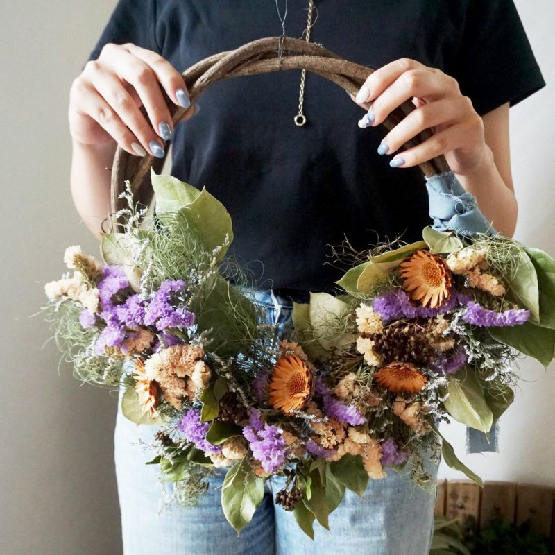 ドライフラワーの中でも鮮やかな色のドライフラワーでまとめたところがポイントです。