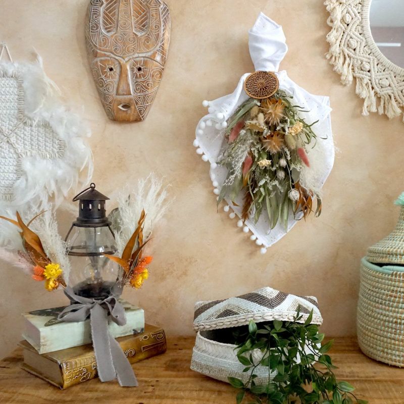 ぜひ、玄関先やリビングの空いた壁面などに飾っていただき、ボーホーの気分を味わってみてください♪