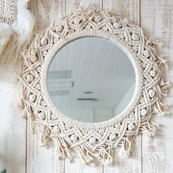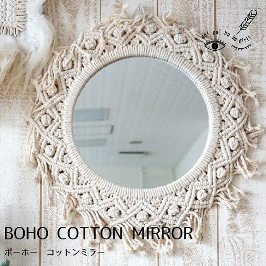 他の画像を見る 直径約44cm マクラメ編みがおしゃれな壁掛けミラー<ボーホーコットンミラー> 販売価格 ¥ 7,920 税込 ドライフラワーと合わせて飾れるウォールデコ カートに入れる お気に入りに登録する