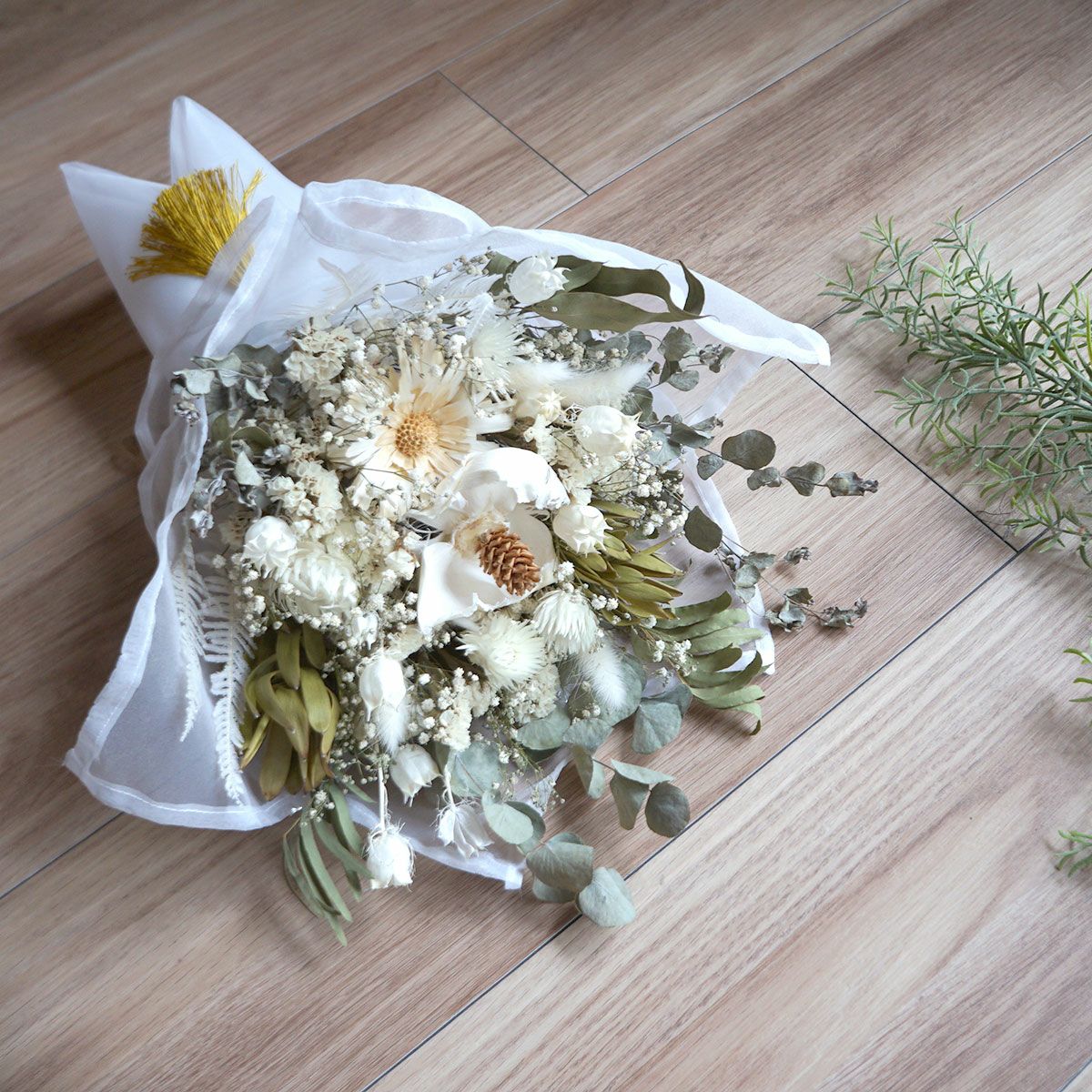 他の画像を見る 【結婚祝いプレゼントにおすすめ】スターチスとカスミソウを使ったホワイトカラーのドライフラワーリース(直径約30cm)<ホワイトクラウド> 販売価格 ¥ 12,100 税込 結婚祝いにおすすめな美しい純白の花嫁をイメージしてつくったリースです。リースはその途切れない丸い形から永遠を象徴するものとして伝わってきました。「幸せな結婚生活が続きますように。」そんな願いを込めたプレゼントにいかがでしょうか?サイズも直径30cm程度なので飾りやすいです。メッセージカードも無料でお付けできます。 詳細を見る お気に入りに登録する