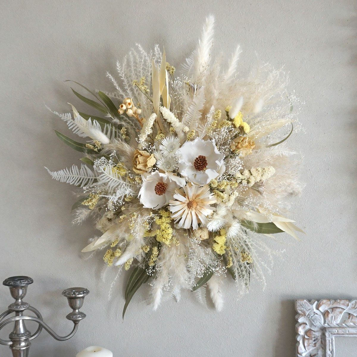 他の画像を見る 【開店祝いなどにもおすすめ】H80センチ・パンパスグラスとワイルドフラワーがメインのBOHOウォールデコレーション<アリア> 販売価格 ¥ 15,400 税込 パンパスグラスと南アフリカ産のワイルドフラワーがアクセントの大人可愛い壁飾りです。 BOHOテイストのナチュラルの素材感が合わせやすい。開店祝いや引っ越し祝い、自宅のインテリアとしてもおすすめです。 詳細を見る お気に入りに登録する