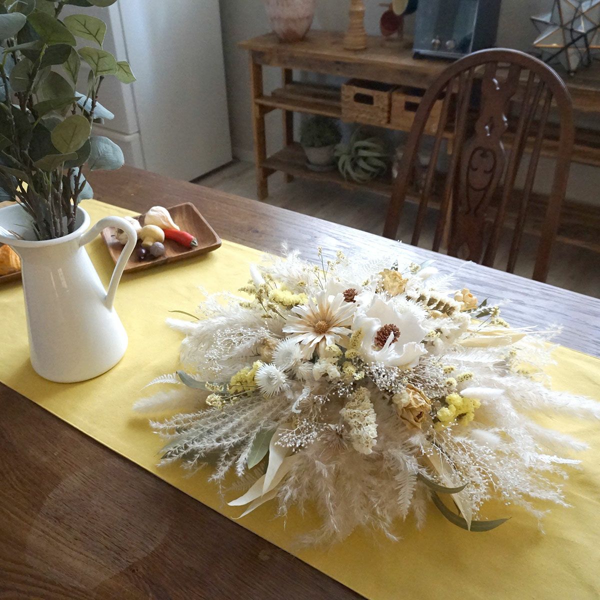 他の画像を見る イエローとホワイトカラーのお花を使った円型のおしゃれなドライフラワー壁飾り<レモン> 販売価格 ¥ 29,700 税込 円型のフォルムがおしゃれなドライフラワーの壁飾り。店舗やサロンのおしゃれな店内装飾・装花にぴったり。豪華なデザインなので、開店祝い・開業祝い・結婚祝い・特別なプレゼントなどにもおすすめです。軽量なので取り付けも簡単で画鋲やフックに引っ掛けるだけですぐに飾っていただけます。テーブルの上に置いて飾っていただくこともできます。 詳細を見る お気に入りに登録する