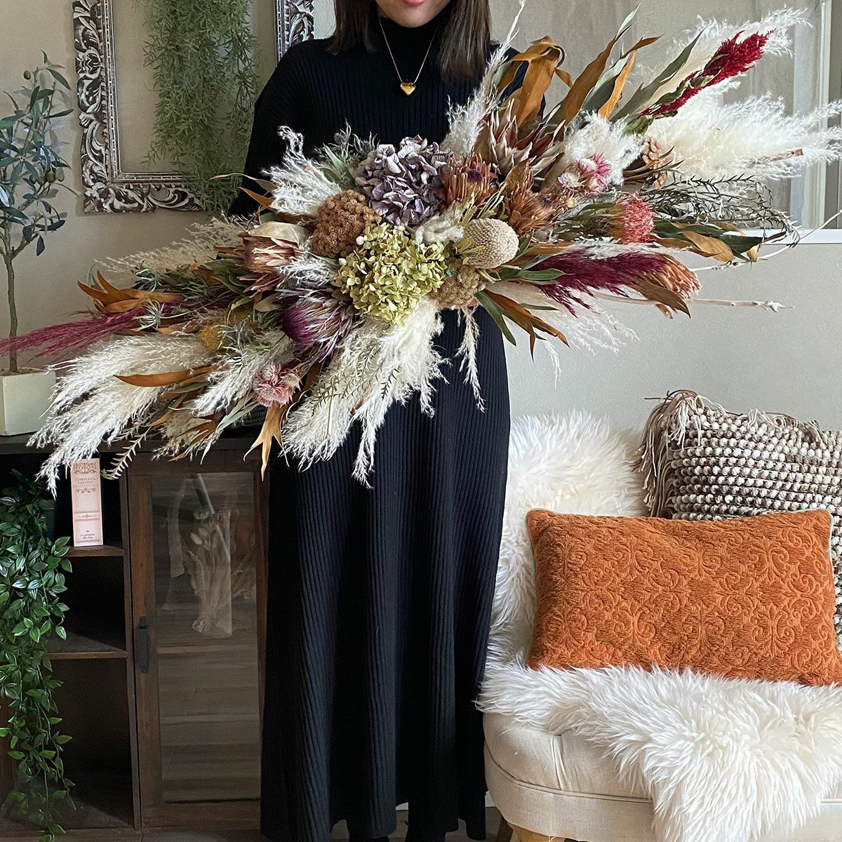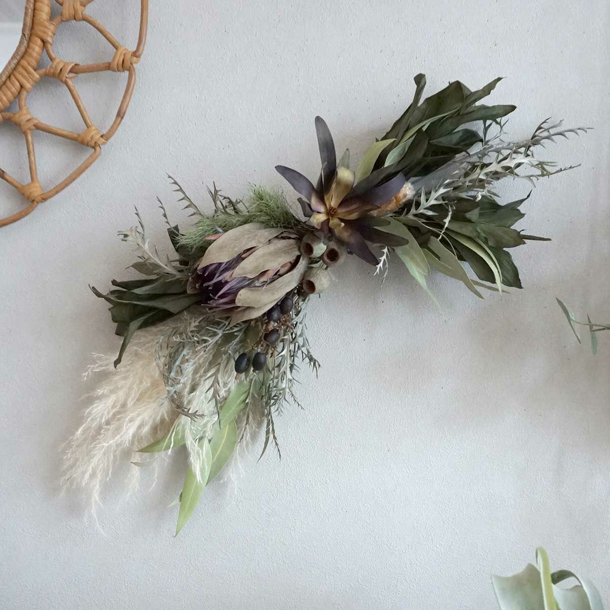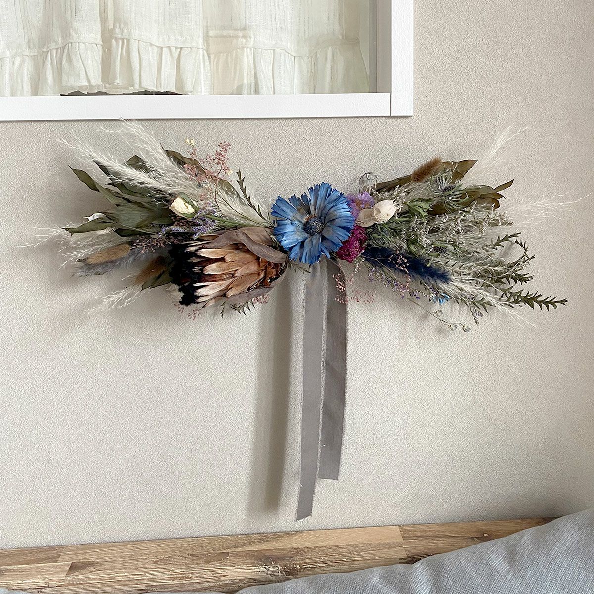 他の画像を見る 【シャビーシック】豪華・キングプロテアやパンパスグラス、ユーカリやアジサイなどのドライフラワーをたっぷり使ったおしゃれなウォールデコレーション<SANCTUARY -サンクチュアリ-> 販売価格 ¥ 20,900 税込 豪華なワイルドフラワーのドライフラワーを使ったナチュラルなウォールデコレーション。店舗の内装にもおすすめの装花です。開店祝い・引っ越し祝いにもおすすめ。 詳細を見る お気に入りに登録する