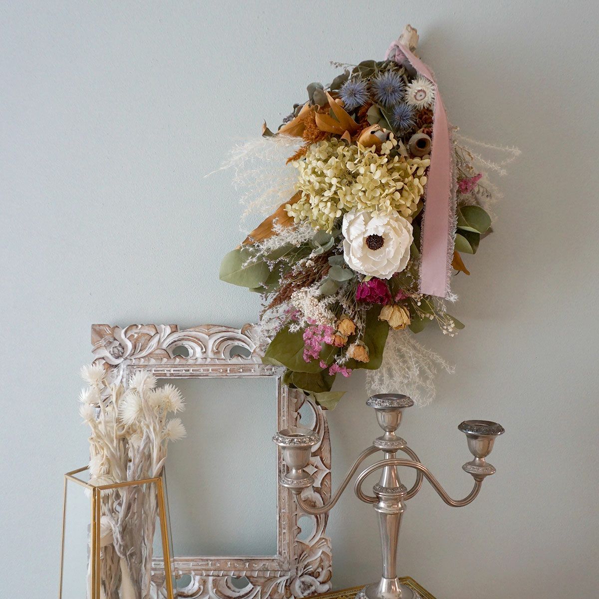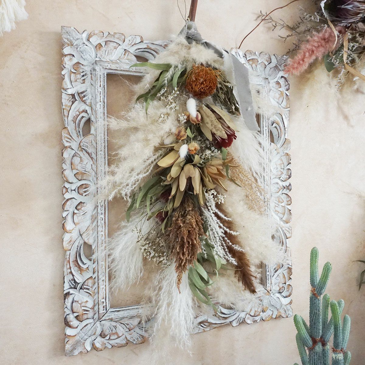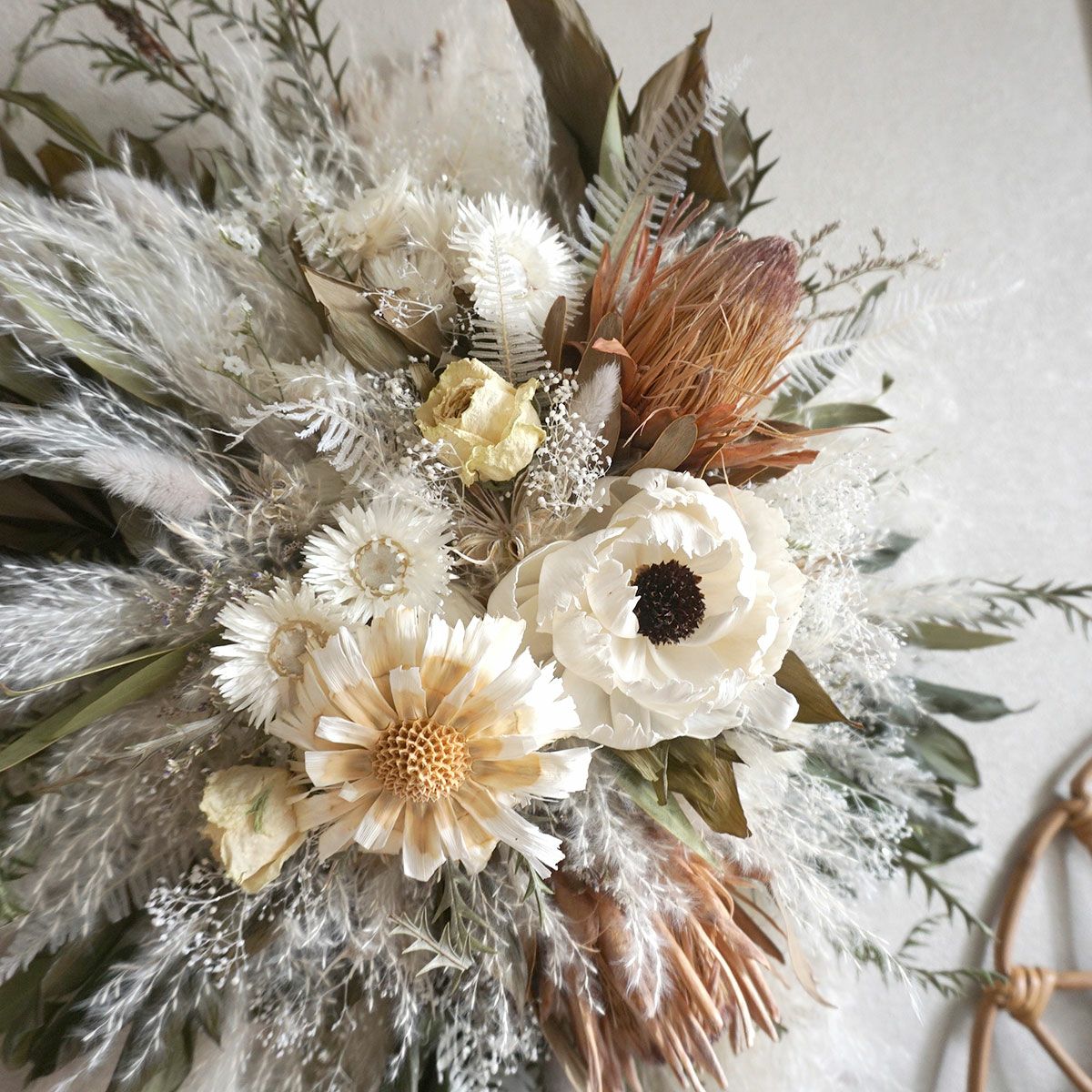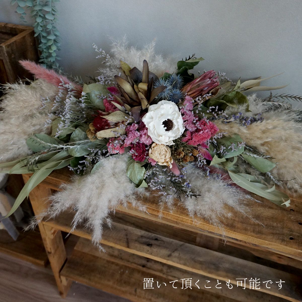 他の画像を見る 【シャビーシック】豪華・キングプロテアやパンパスグラス、ユーカリやアジサイなどのドライフラワーをたっぷり使ったおしゃれなウォールデコレーション<SANCTUARY -サンクチュアリ-> 販売価格 ¥ 20,900 税込 豪華なワイルドフラワーのドライフラワーを使ったナチュラルなウォールデコレーション。店舗の内装にもおすすめの装花です。開店祝い・引っ越し祝いにもおすすめ。 詳細を見る お気に入りに登録する