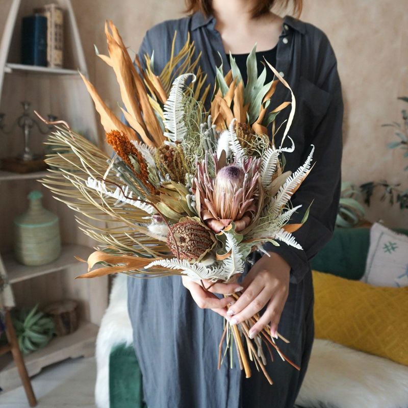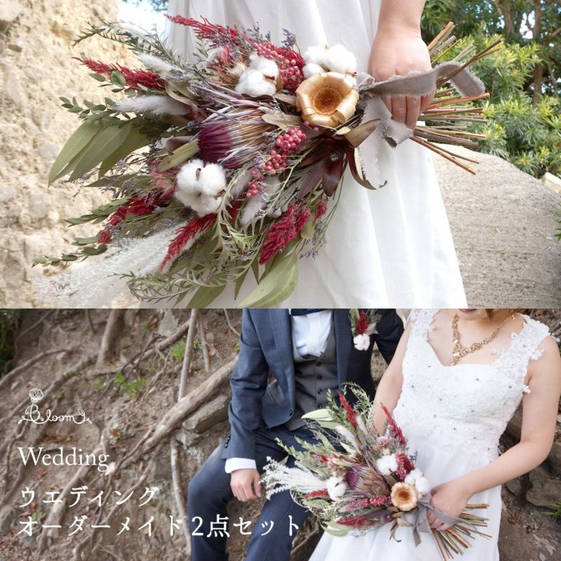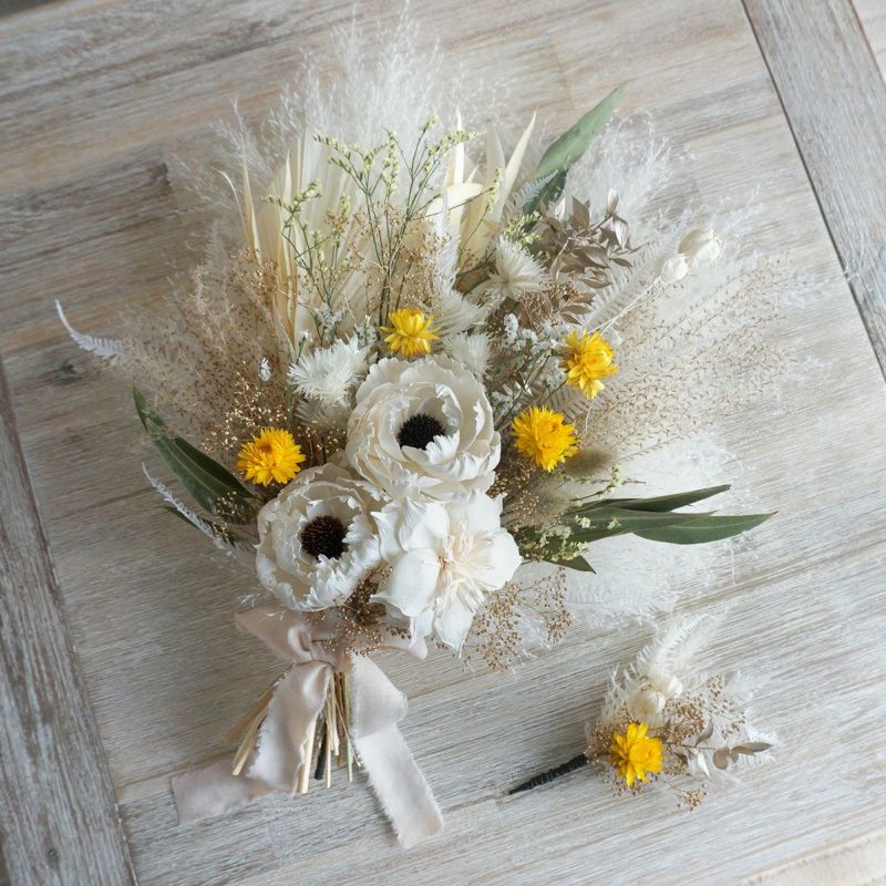 ドライフラワーで作るオーダーメイドのウエディングブーケ&ブートニア(ご予算24200円)結婚式・前撮り・フォトウェディングにもおすすめ!使用した後はおしゃれなインテリアに。