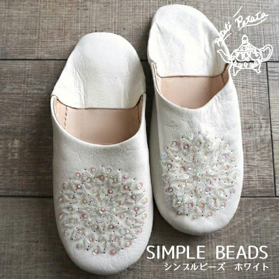 バブーシュ M・Lサイズ(22~26cm) <シンプルビーズ ホワイト>:1セット